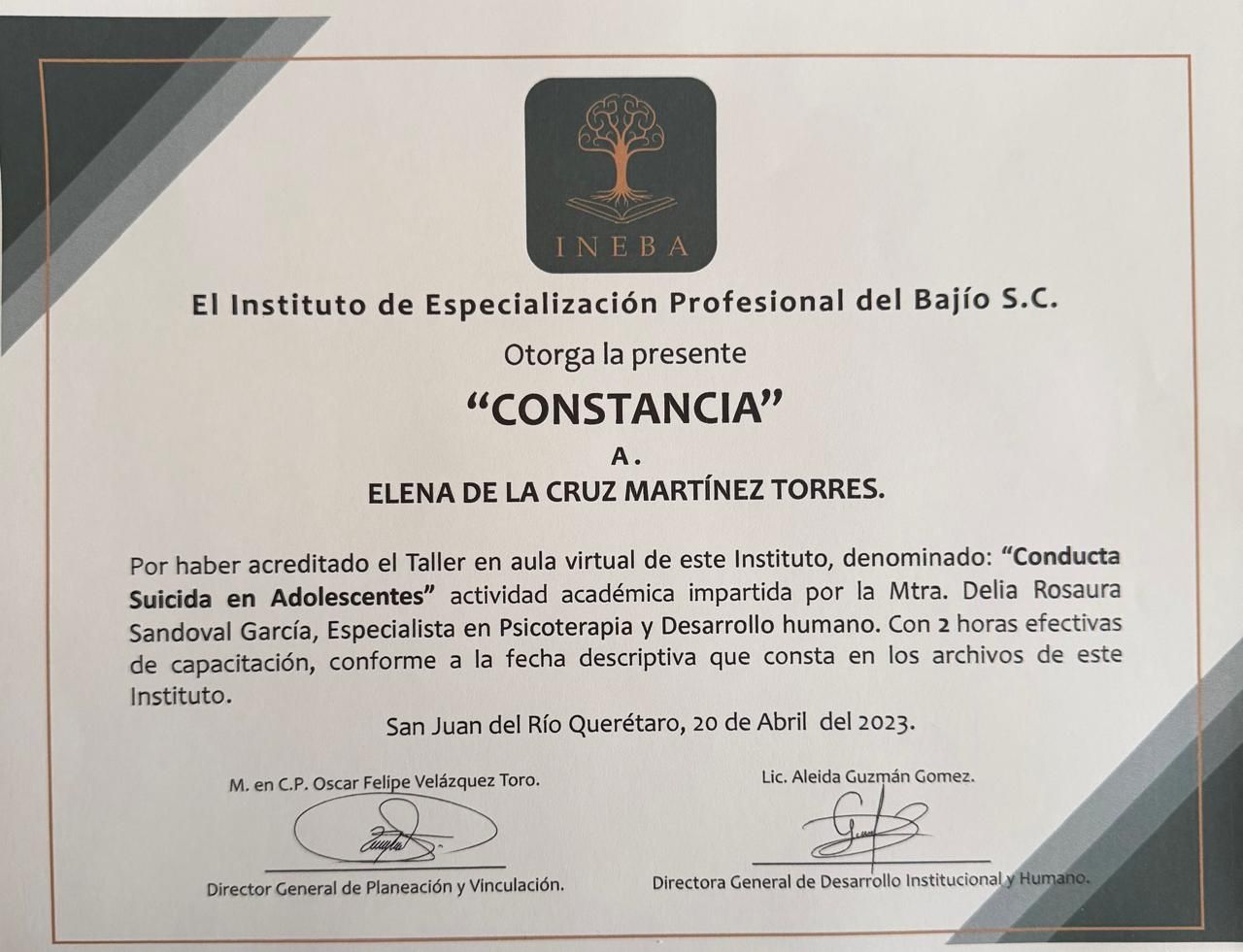 En el tiempo que me ha tratado, me ha ayudado en diversos aspectos de mi vida personal, laboral y romántica. Gracias a ella he aprendido a manejar mejor con mi identidad, mis inseguridades y mis emociones. La recomiendo mucho.