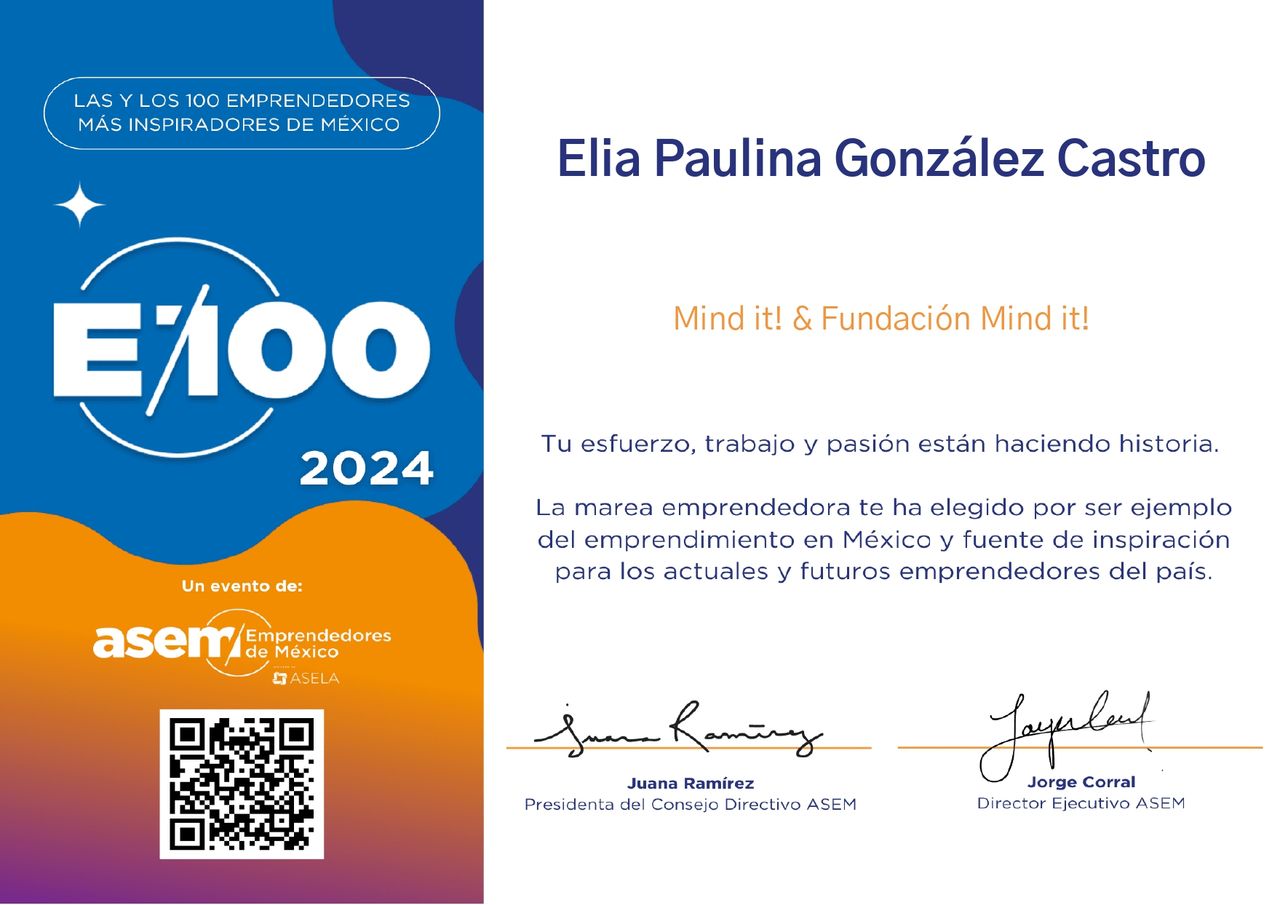 Creadora de Mind it! Brindando servicios de salud mental por medio de talleres en en más de 10 países, en beneficio de Mind it! Foundation, Asociación Civil que crea acceso a servicios de psicoterapia a bajo costo y gratuitas en Latinoamérica y para la comunidades hispana de Estados Unidos.
