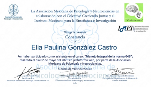 Con ponencias Nacionales para el Colegio Mexicano de Psicología y CNEIP.