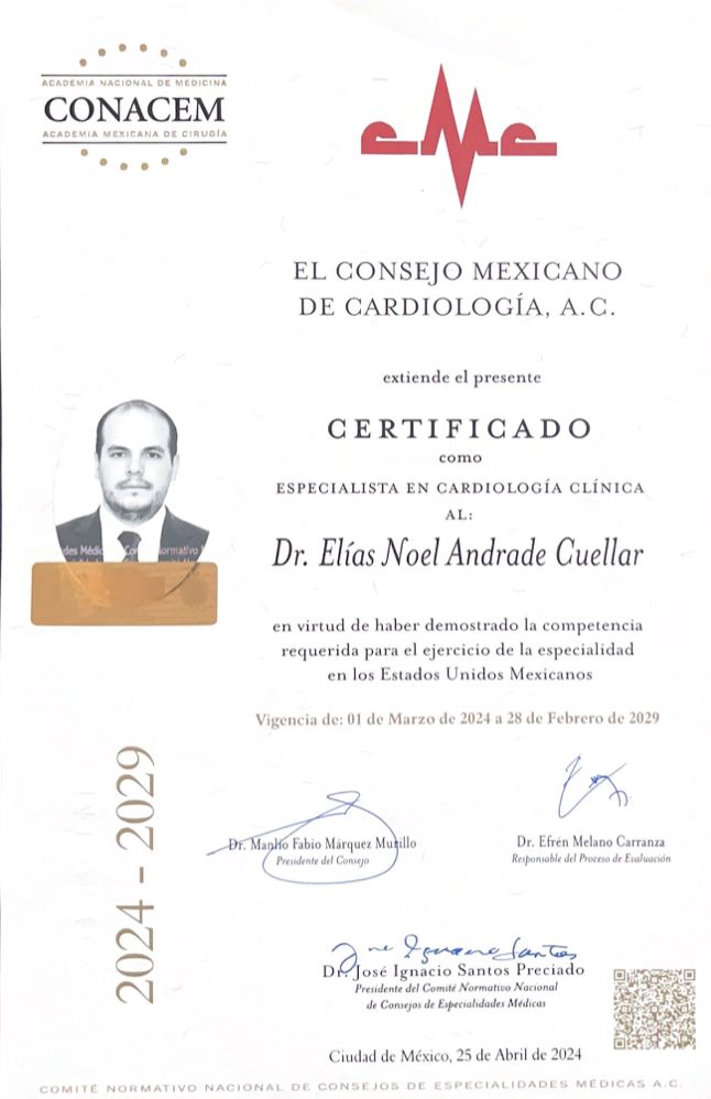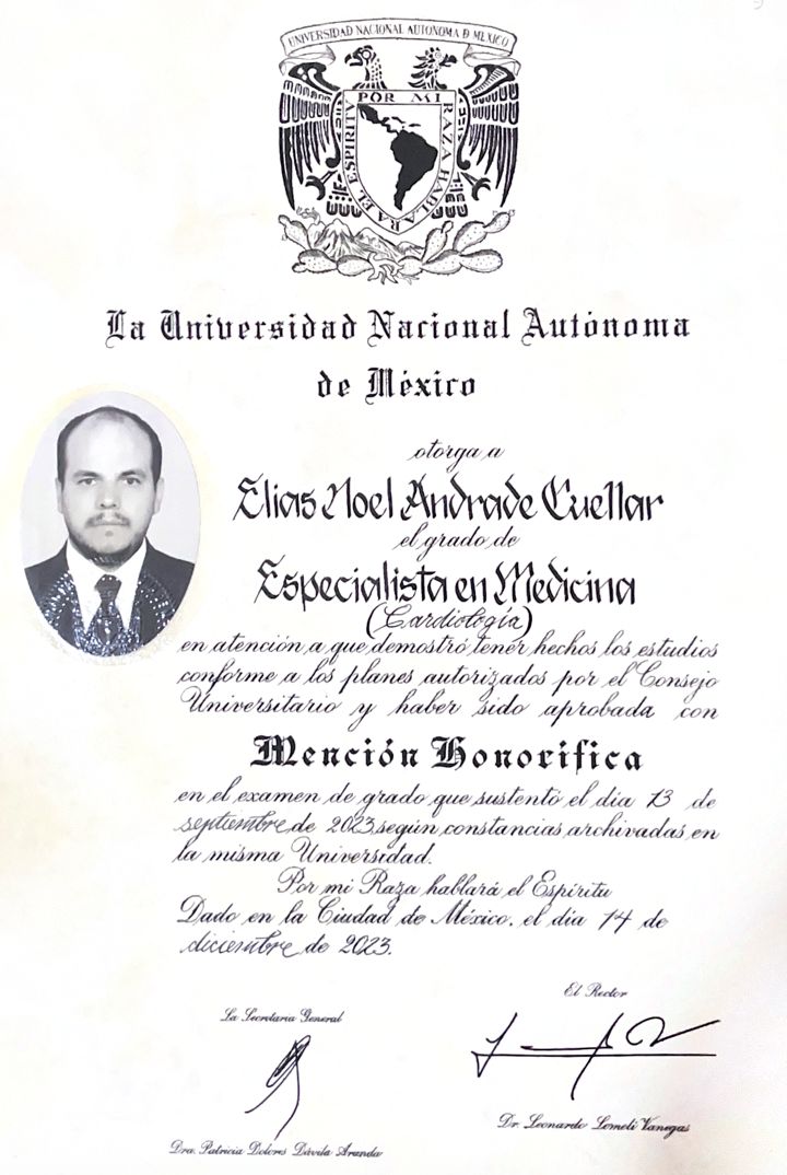 Soy el Dr. Elias Noel Andrade Cuellar, especialista en Cardiología y Electrofisiología Cardíaca, dedicado al diagnóstico y tratamiento integral de todas las patologías que afectan al corazón. Actualmente, me desempeño como Médico Adscrito y Profesor Adjunto de la UNAM en el Centro Médico Nacional "20 de Noviembre", combinando la práctica clínica con la formación de nuevos especialistas. Mi labor se distingue por un enfoque de vanguardia en ablación con catéter de arritmias cardiacas, modulación autonómica, implante de marcapasos, dispositivos de alta energía y estimulación fisiológica, áreas en las que mantengo una participación activa en investigación y como revisor científico para la prestigiosa familia de publicaciones del European Heart Journal. Mi compromiso es ofrecer a cada paciente una atención de excelencia internacional, centrada en la precisión técnica y la calidad humana.