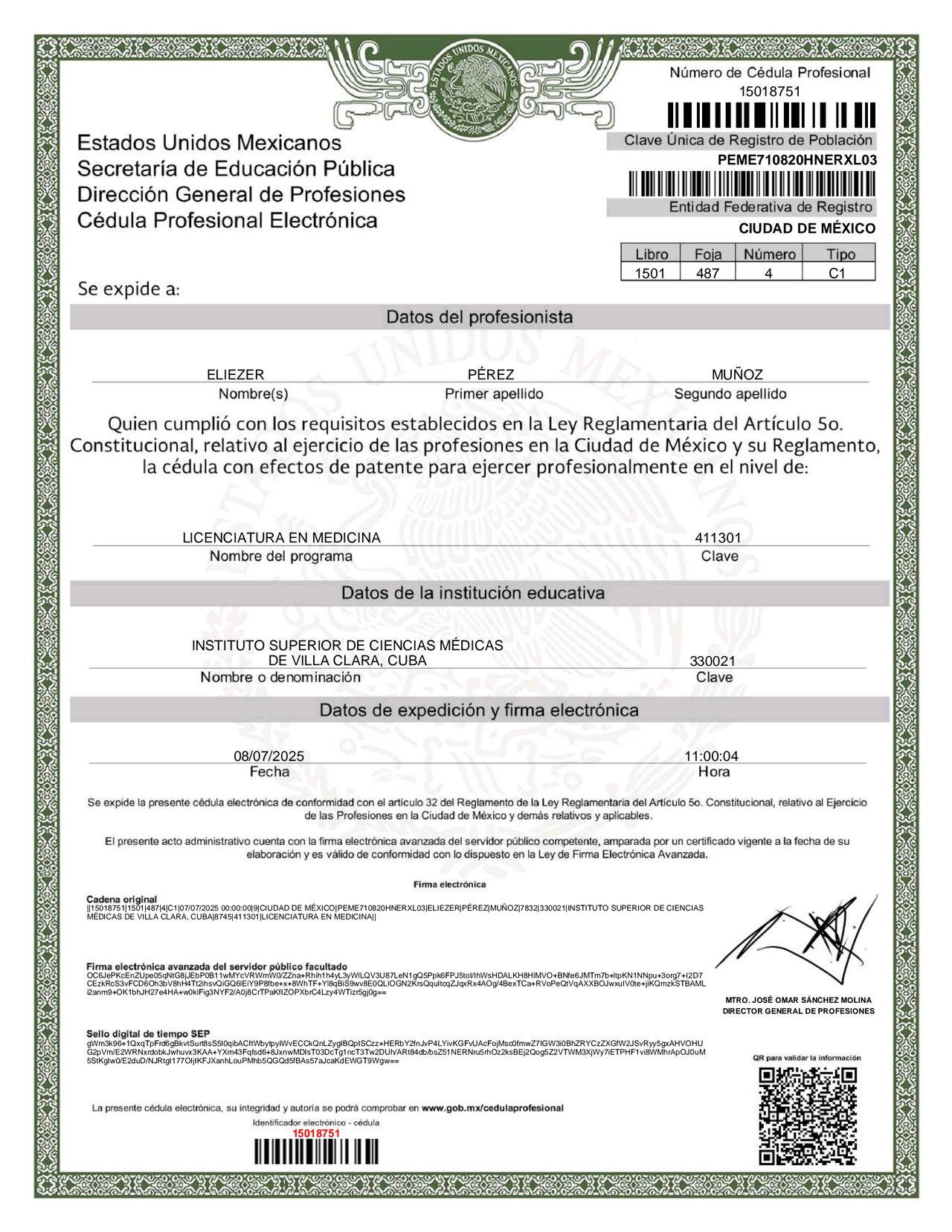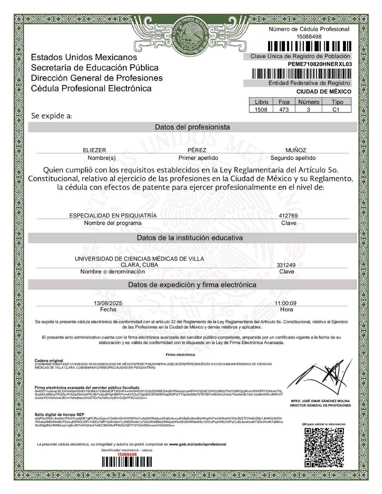 Soy el Dr Eliezer Pérez Muñoz, especialista en psiquiatría en la ciudad de Cancún, con más de 25 años de experiencia profesional. Siempre dispuesto a brindarle a mis pacientes y sus seres queridos acompañamiento profesional sin juicios, con absoluta confidencialidad y apoyo en cada paso, recorriendo juntos el camino de la recuperación de su bienestar emocional, tranquilidad y equilibrio, brindando atención personalizada para cuidar su mente y recuperar su estabilidad y energía ,en un espacio seguro para platicar, entender y sanar, dispuesto siempre a brindar atención personalizada, terapia para el día a día, acompañamiento en los momentos difíciles,reconociendo que su salud mental es tan importante como su salud física .