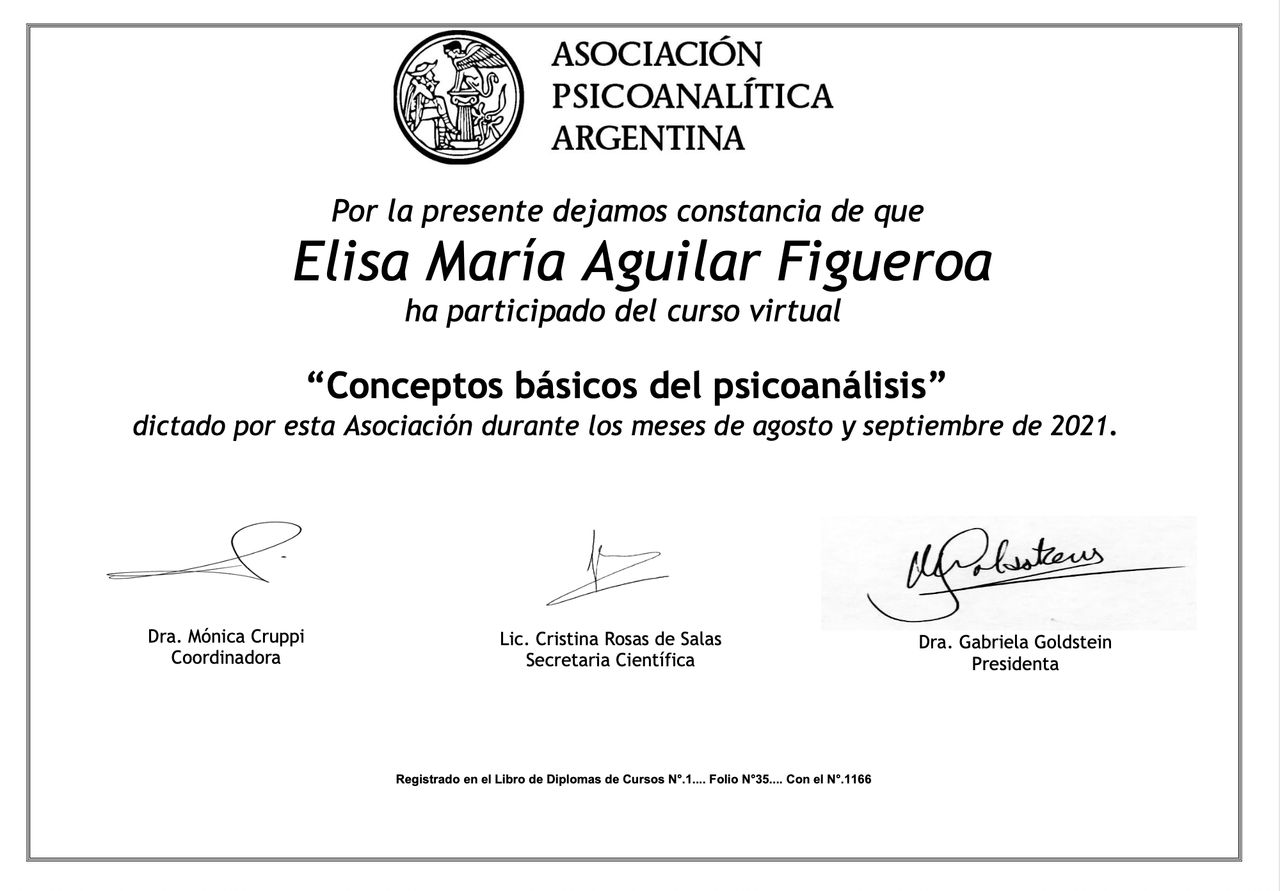 | Formación en Psicoanálisis en la Fundación Buenos Aires (2021 - Actualmente)