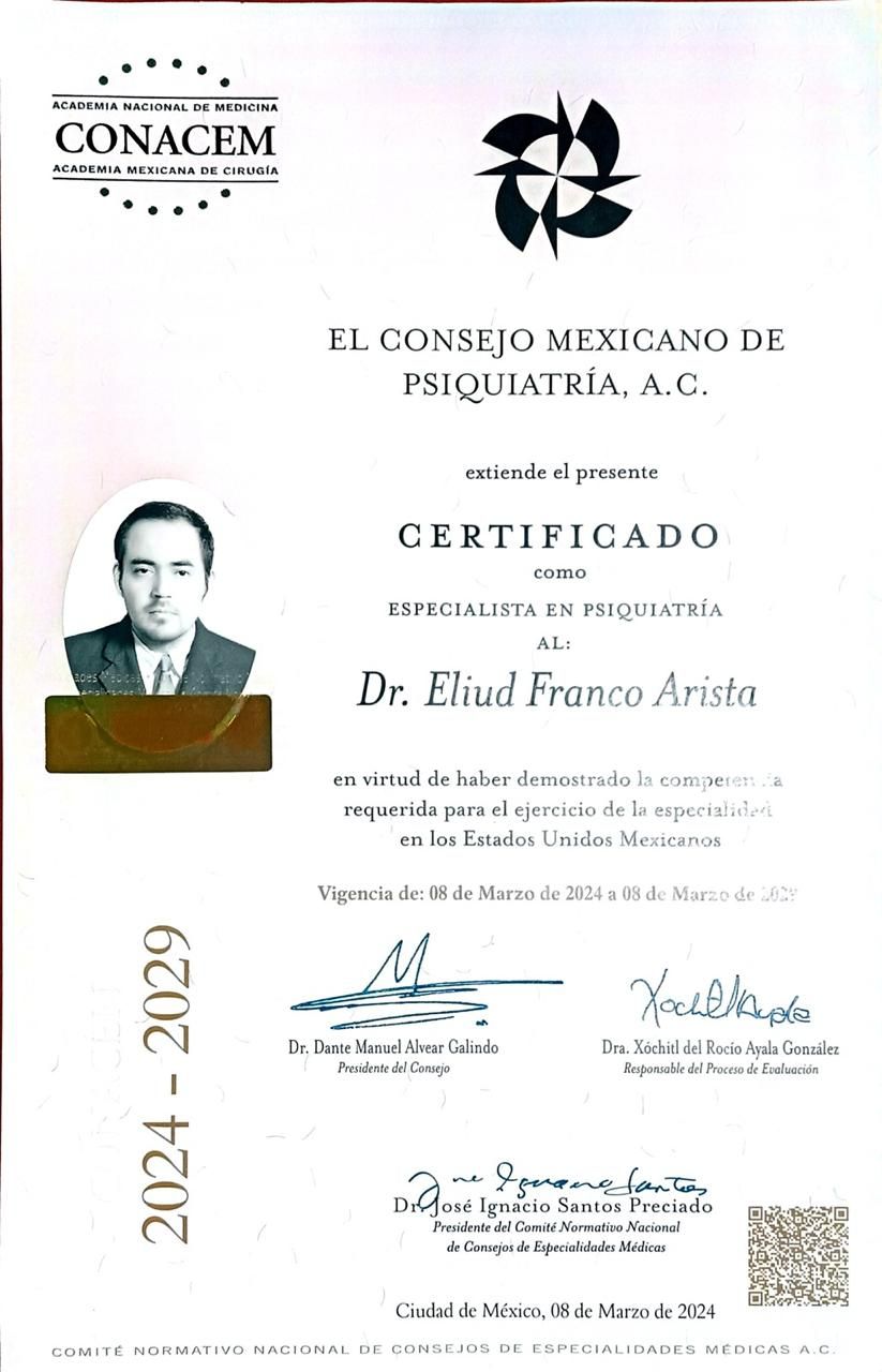 Excelente psiquiatra. Había llevado a mi tío con distintos psiquiatras qué no encontraban la combinación de medicamentos hasta que el Dr. Franco logró encontrar un buen tratamiento y además le explicó a toda su familia como tratar a mi tio por su trastorno.