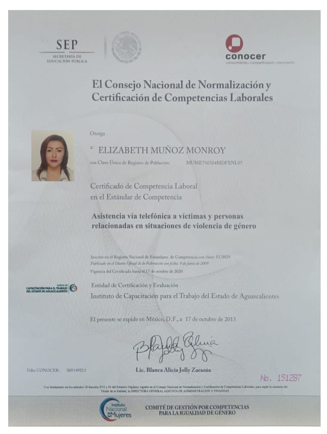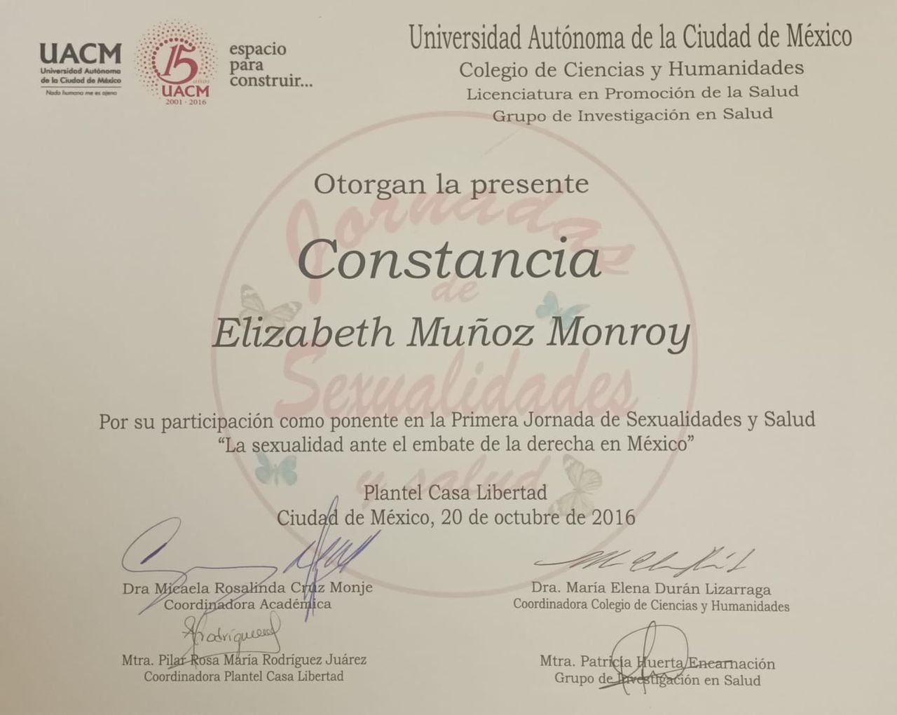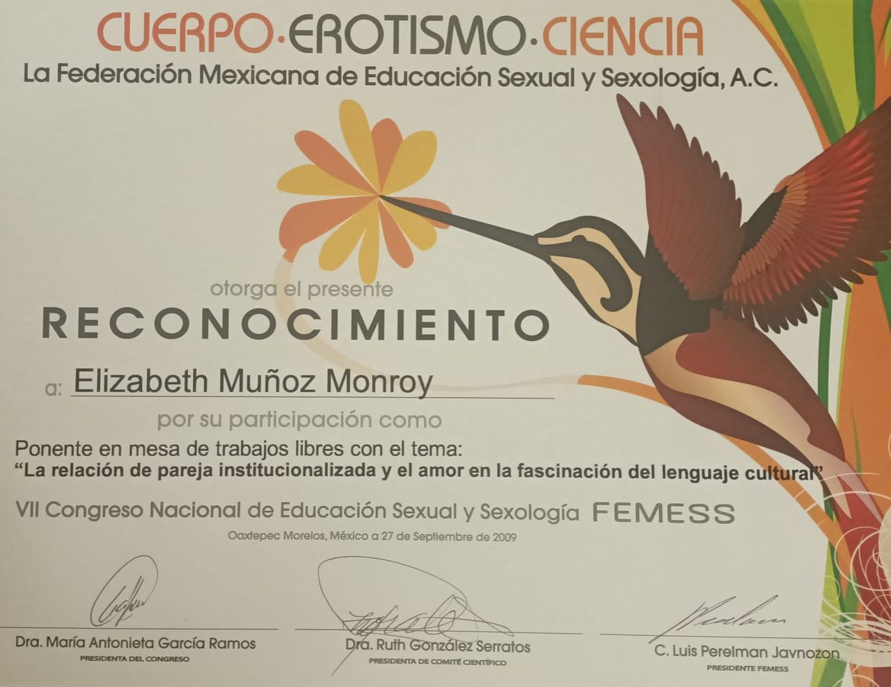 Ψ Certificación como Sexóloga Clínica por el Colegio Mexicano de Posgraduados en Sexología, A.C.