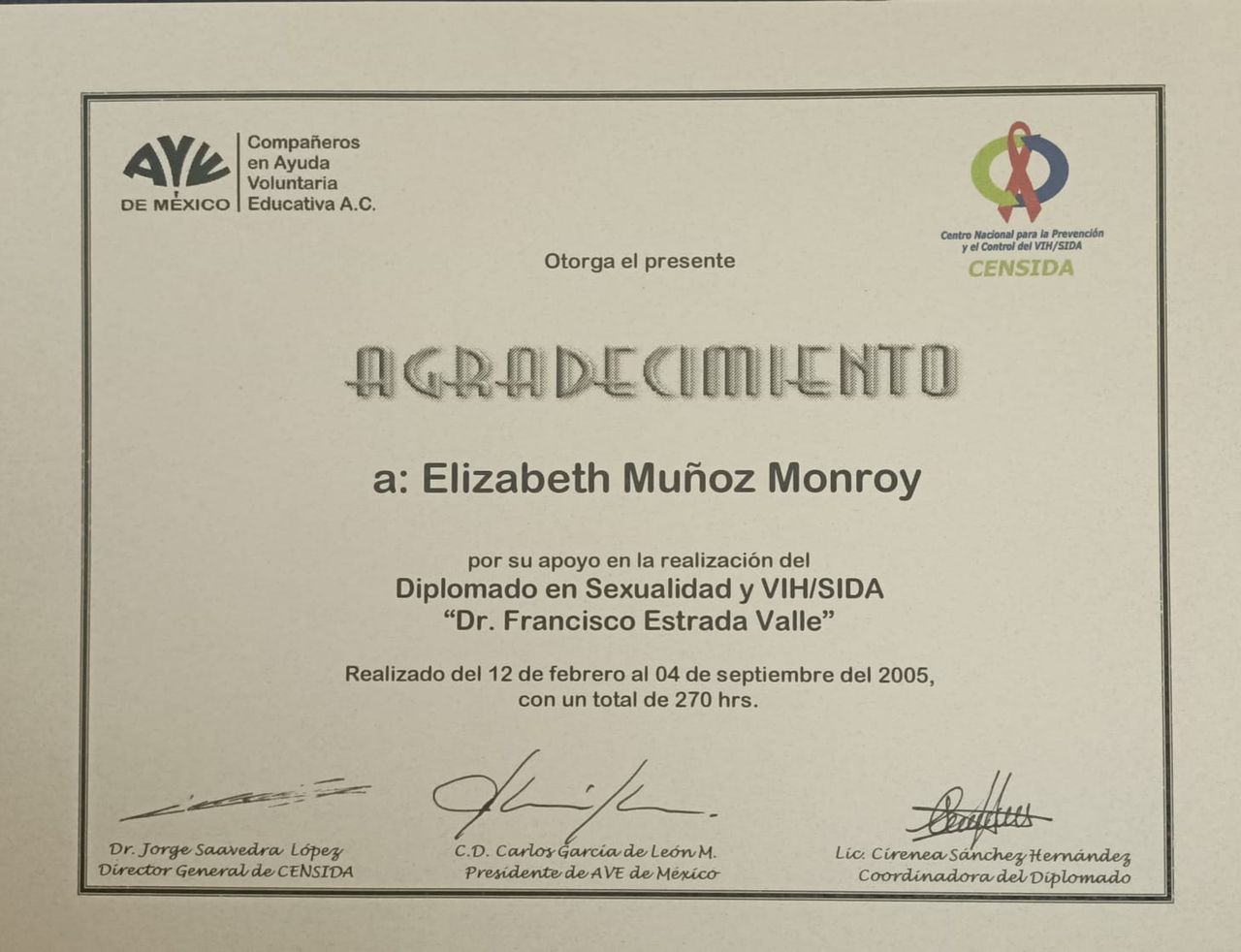 Ψ Especialidad en Educación Sexual, por el Instituto Mexicano de Sexología