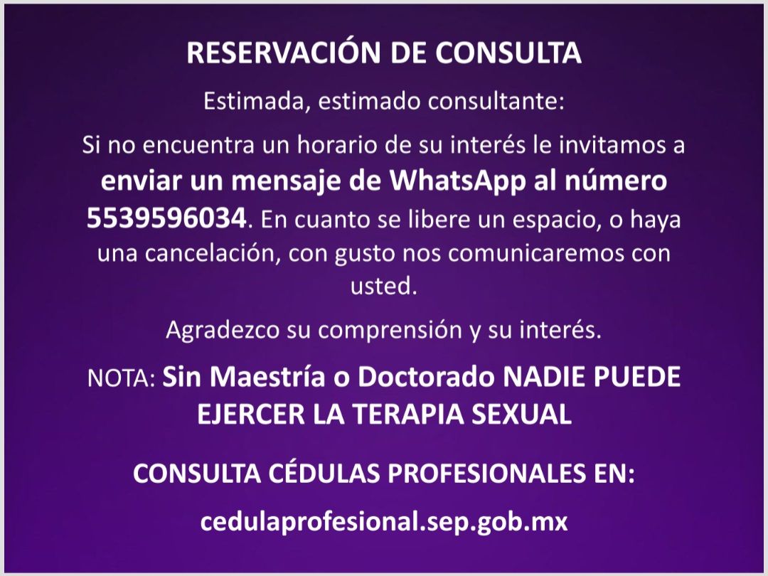 Ψ Maestria (Mtra.) en Sexología Clínica y Terapia Sexual, por el Instituto Mexicano de Sexología