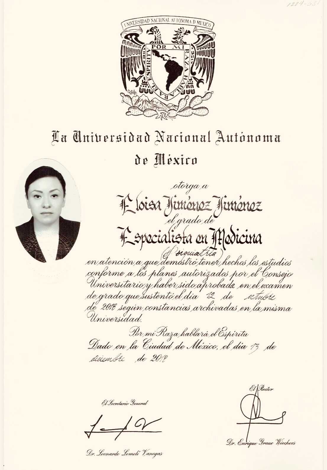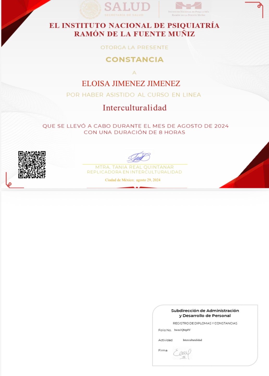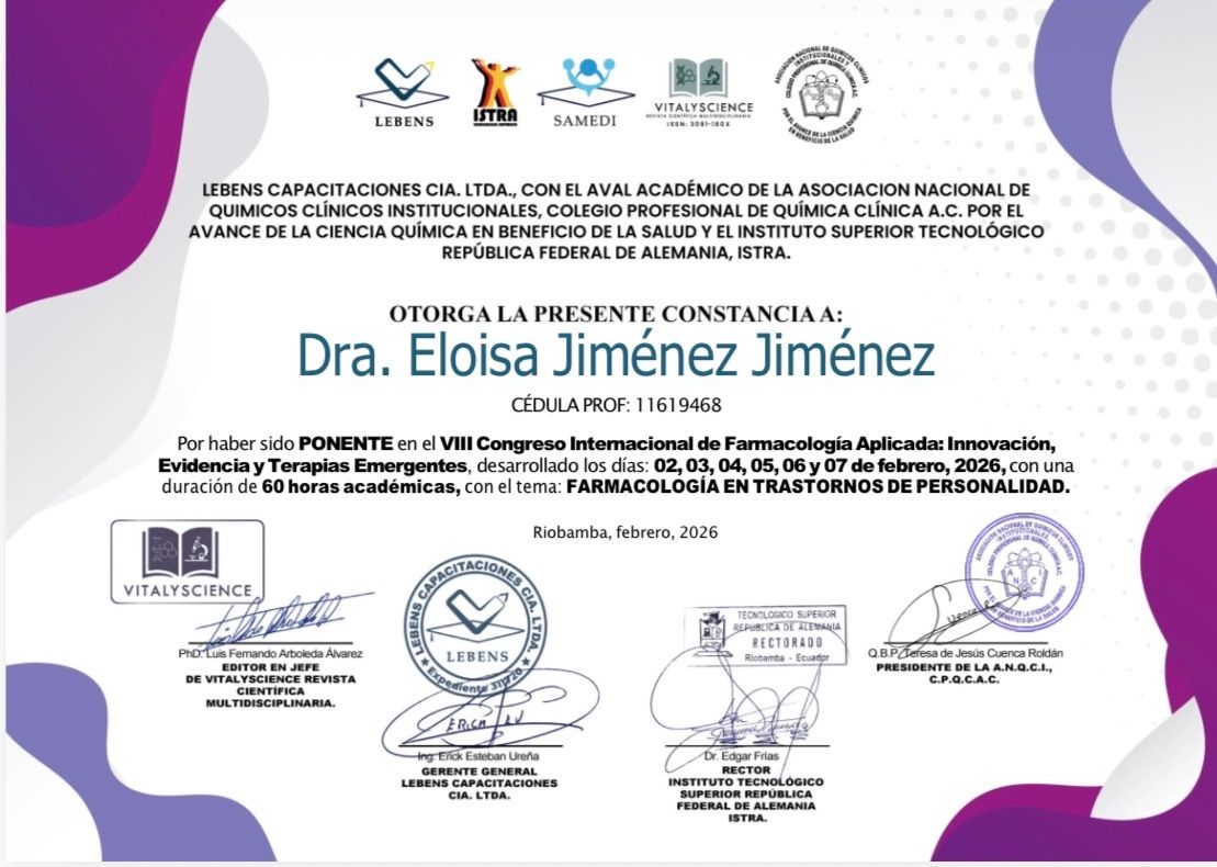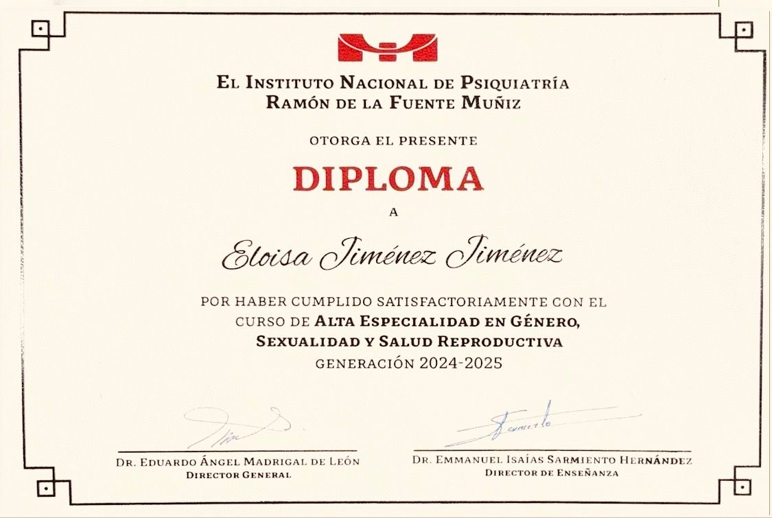 Me formé en el Instituto Nacional de Psiquiatría Ramón de la Fuente Muñiz, una de las instituciones más importantes y reconocidas en psiquiatría en México y Latinoamérica, donde adquirí una sólida preparación clínica, académica y de investigación con altos estándares de excelencia.
