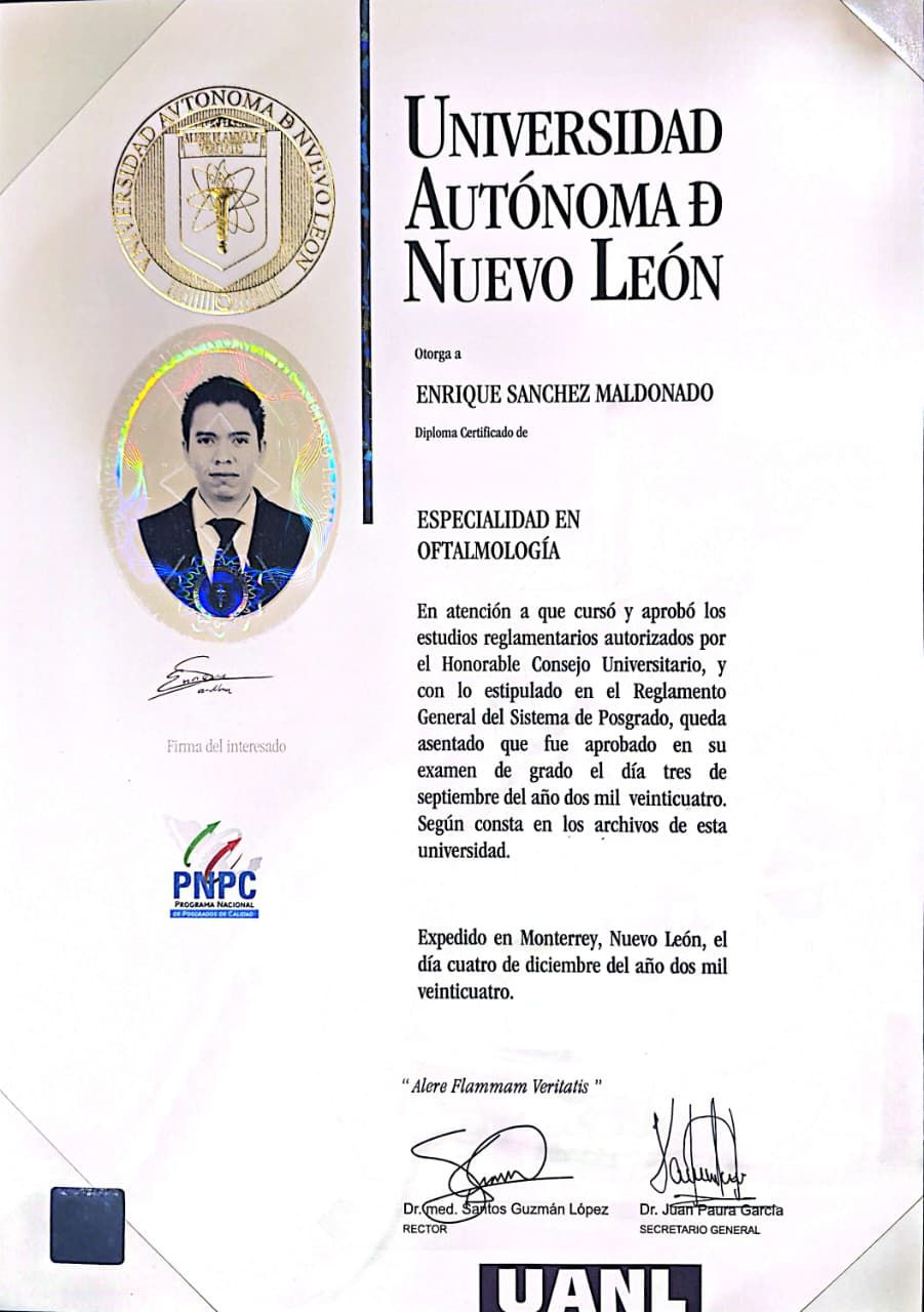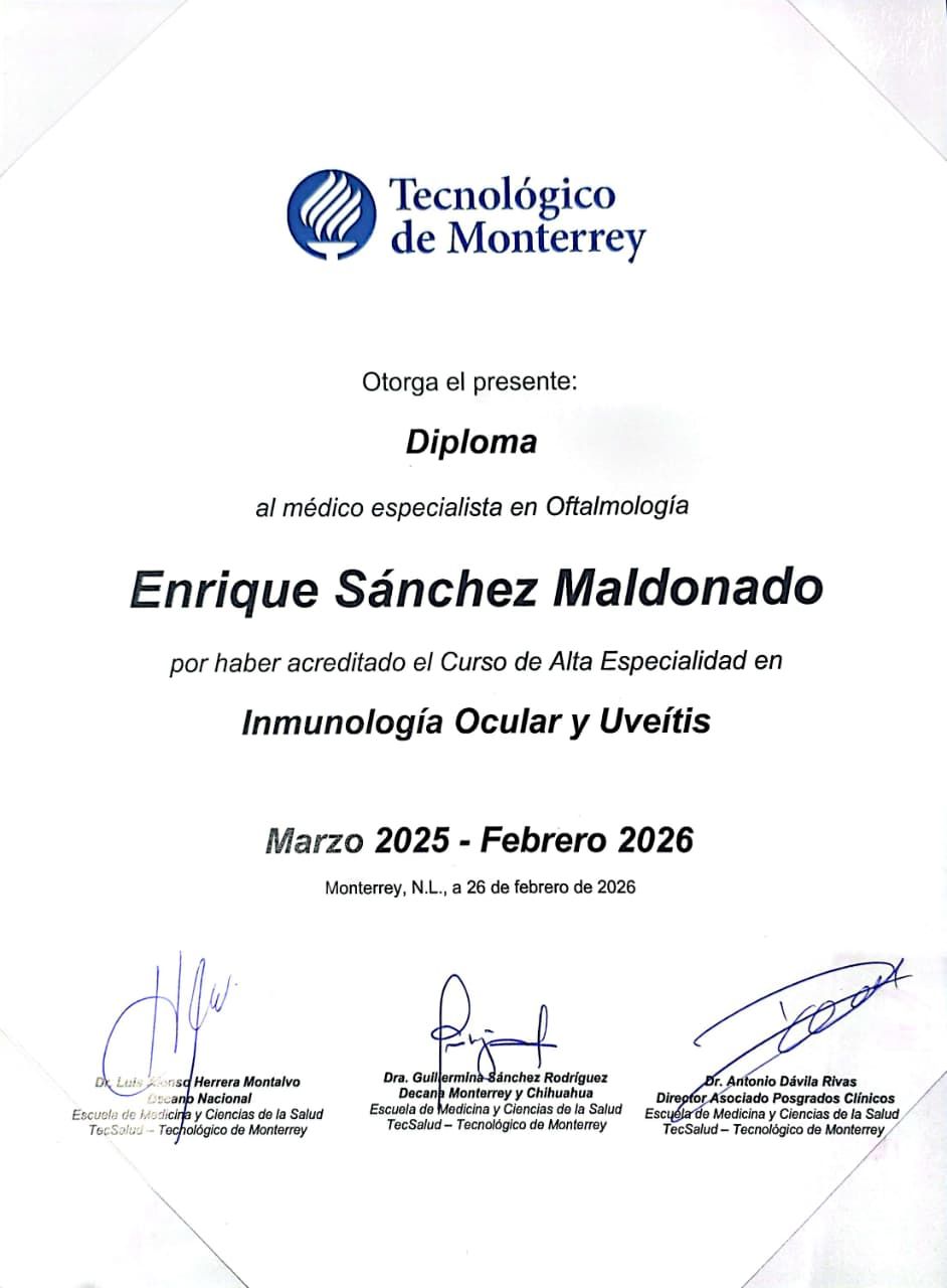 Hola, soy el Dr. Enrique Sánchez Maldonado, cirujano oftalmólogo con alta especialidad en inmunología ocular y uveítis.