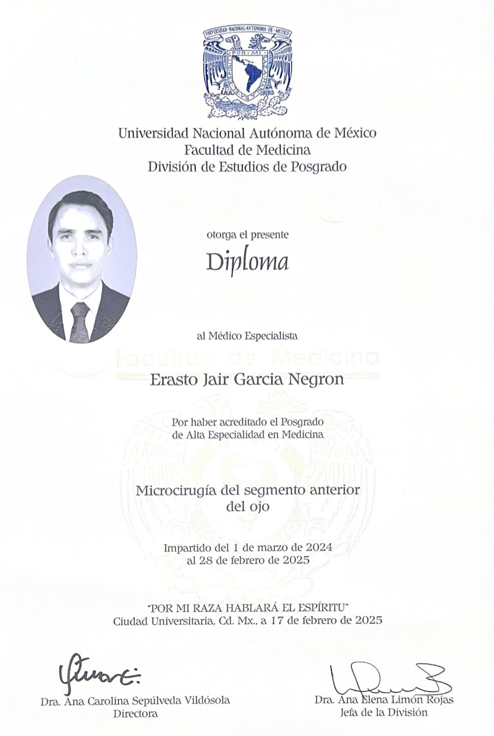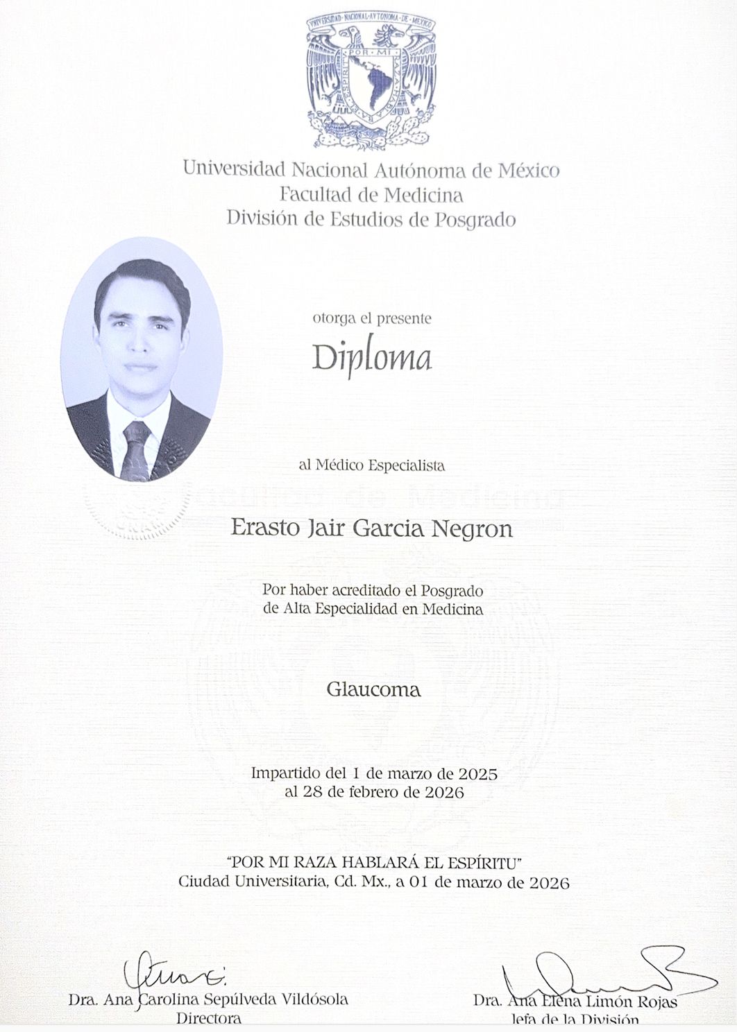 Soy médico oftalmólogo egresado de la Universidad Nacional Autónoma de México, con dos altas especialidades, soy subespecialista en Microcirugía de Segmento Anterior (Microcirugía de catarata) y Subespecialista en Glaucoma, formado en la Fundación Hospital Nuestra Señora de la Luz, una de las instituciones oftalmológicas más reconocidas en México.