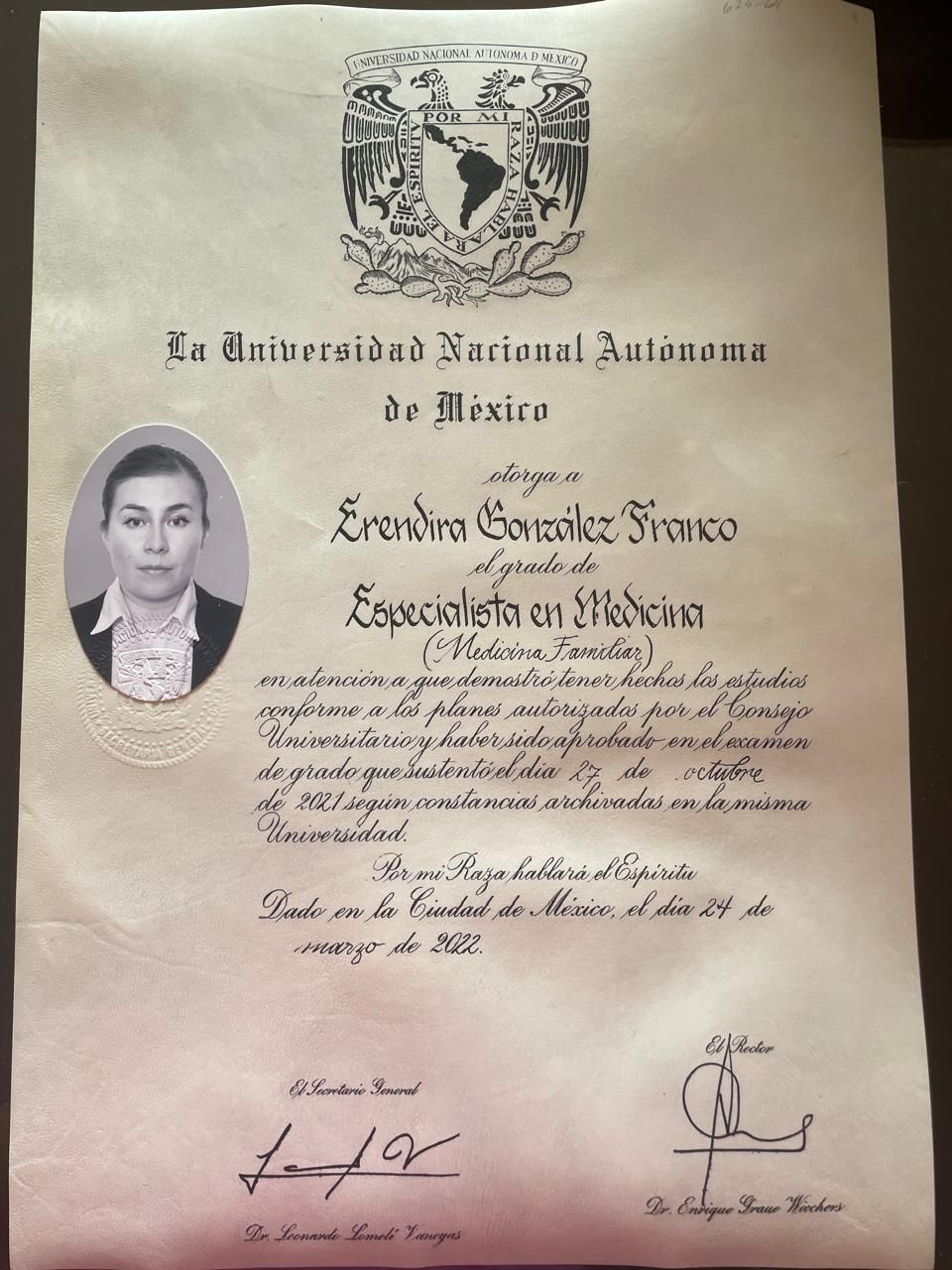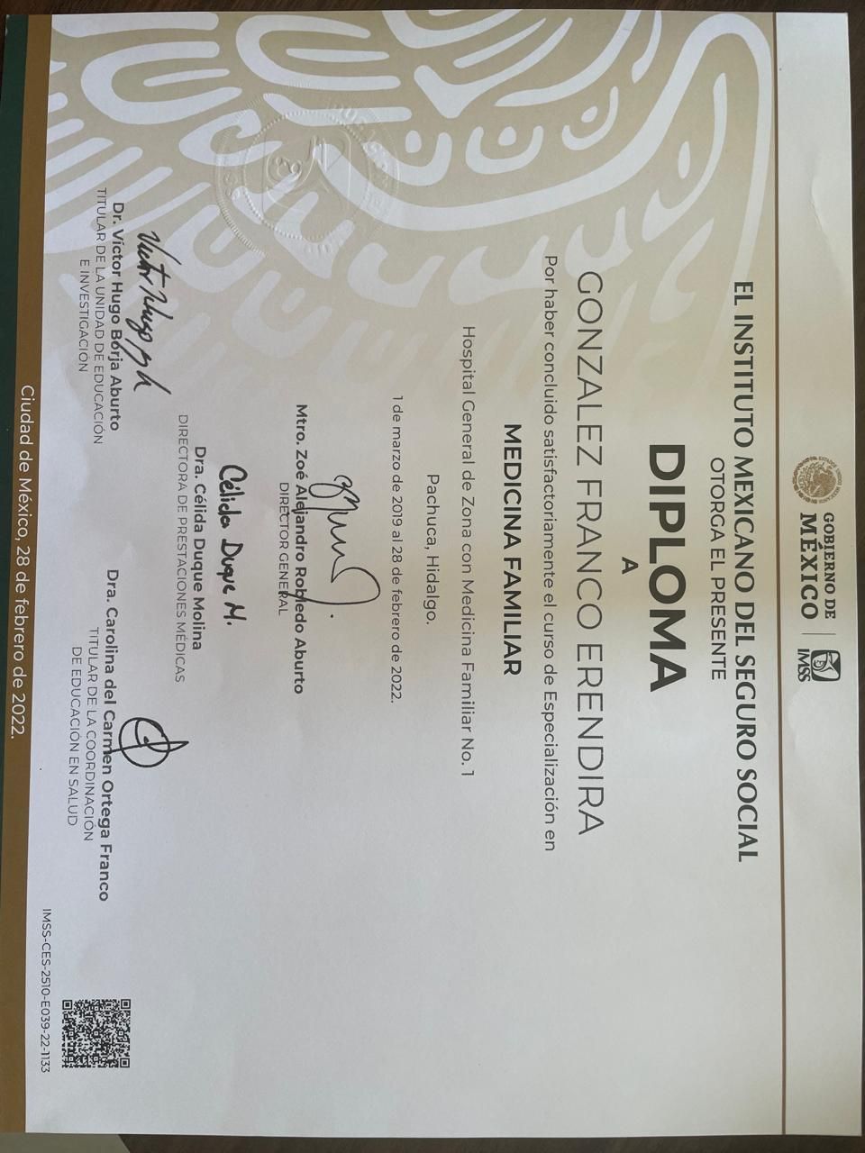 Médico especialista en medicina familiar avalada por Universidad Nacional Autónoma de México
