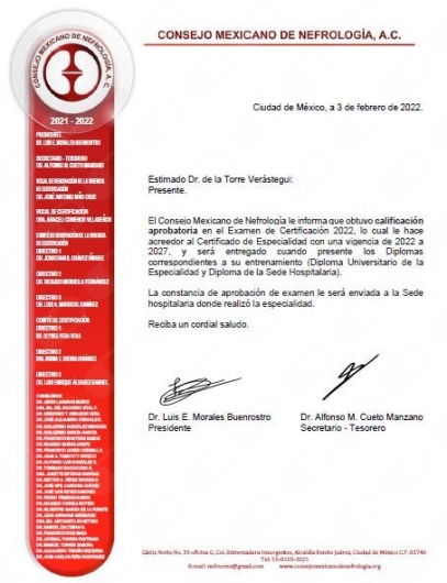 Consulta subsecuente Nefrología