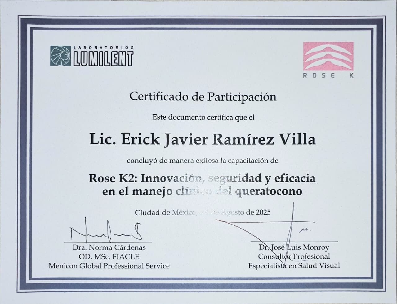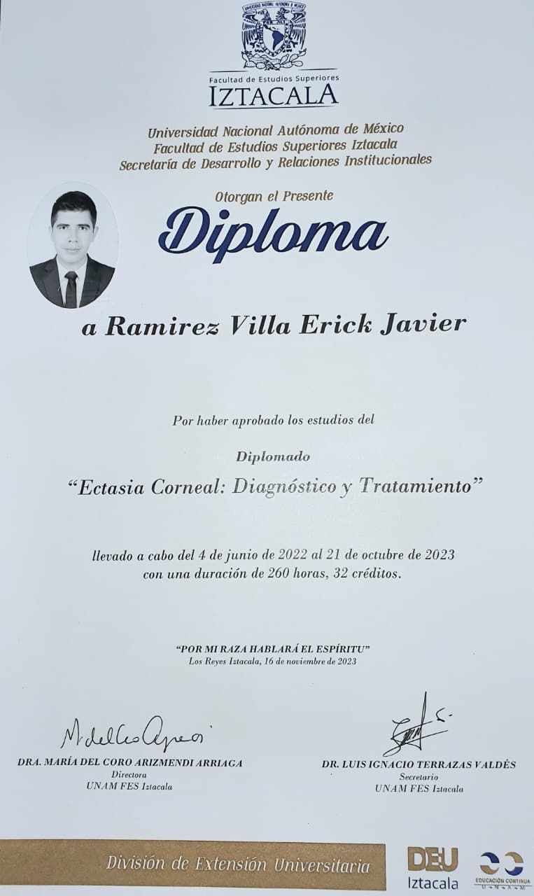 Soy Licenciado en Optometría por el Instituto Politécnico Nacional y tengo un Diplomado en Tratamiento de Ectasias Corneales por la Universidad Autónoma de México.