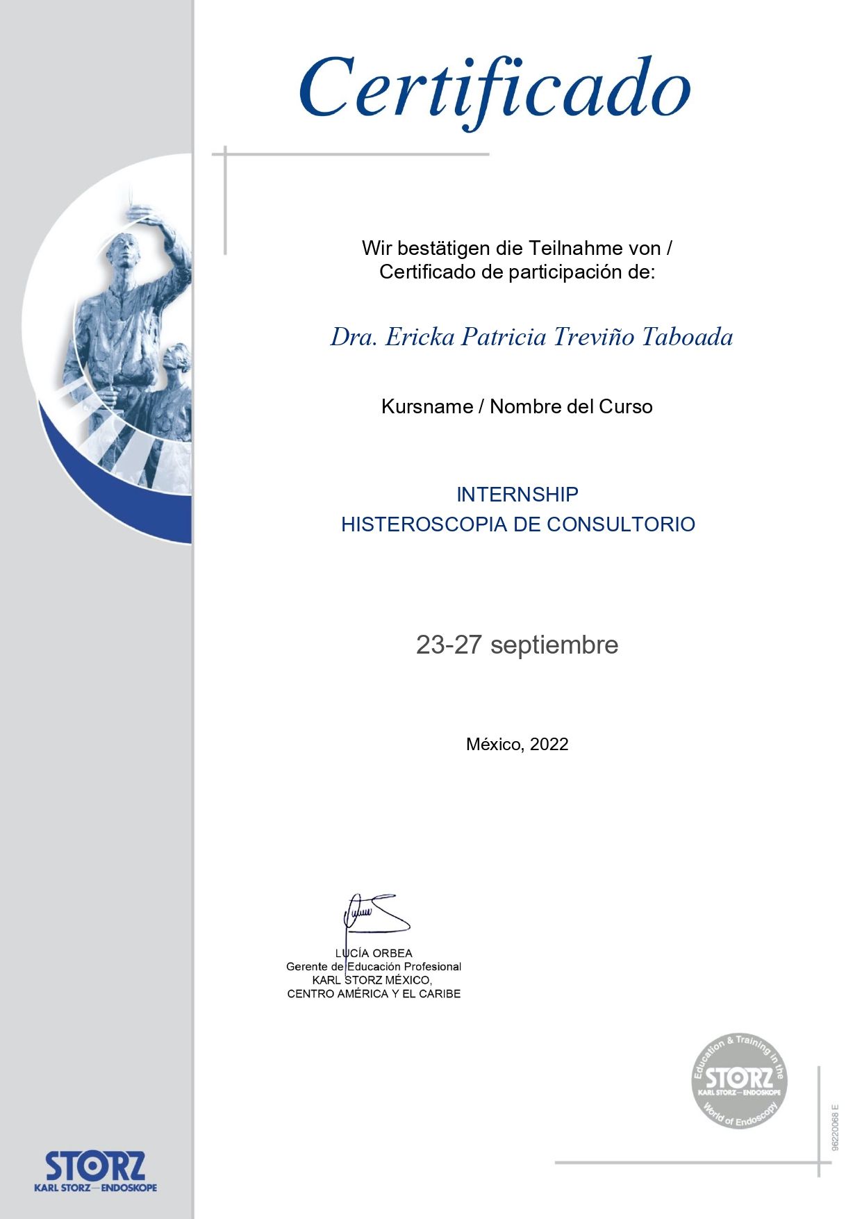 Recomiendo ampliamente a la Dra. Ericka Patricia Treviño Taboada por su excepcional profesionalismo y dedicación.