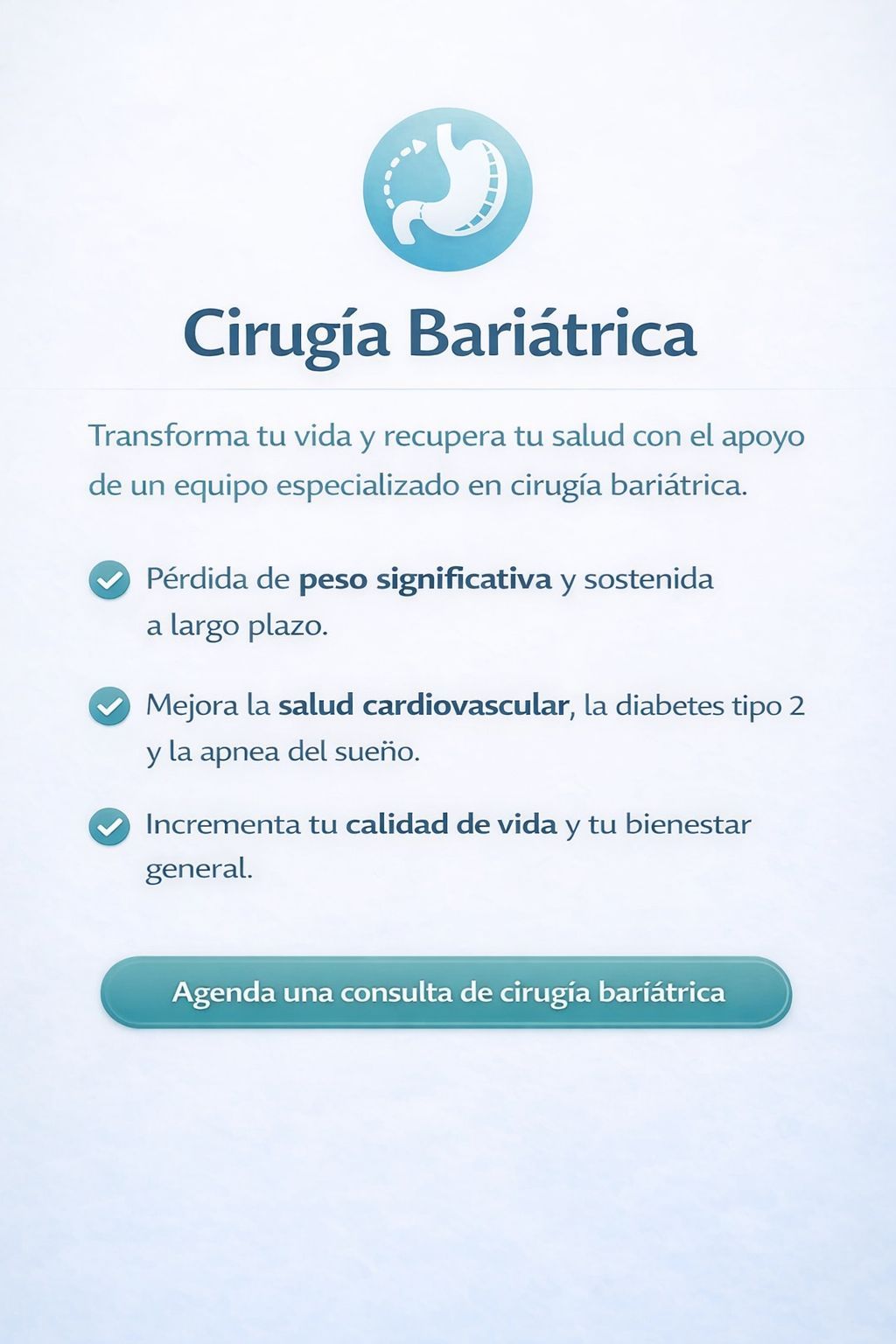 ¡¡MEJORA TU CALIDAD DE VIDA!! Pierde peso de manera significativa y sostenida con cirugía bariátrica.