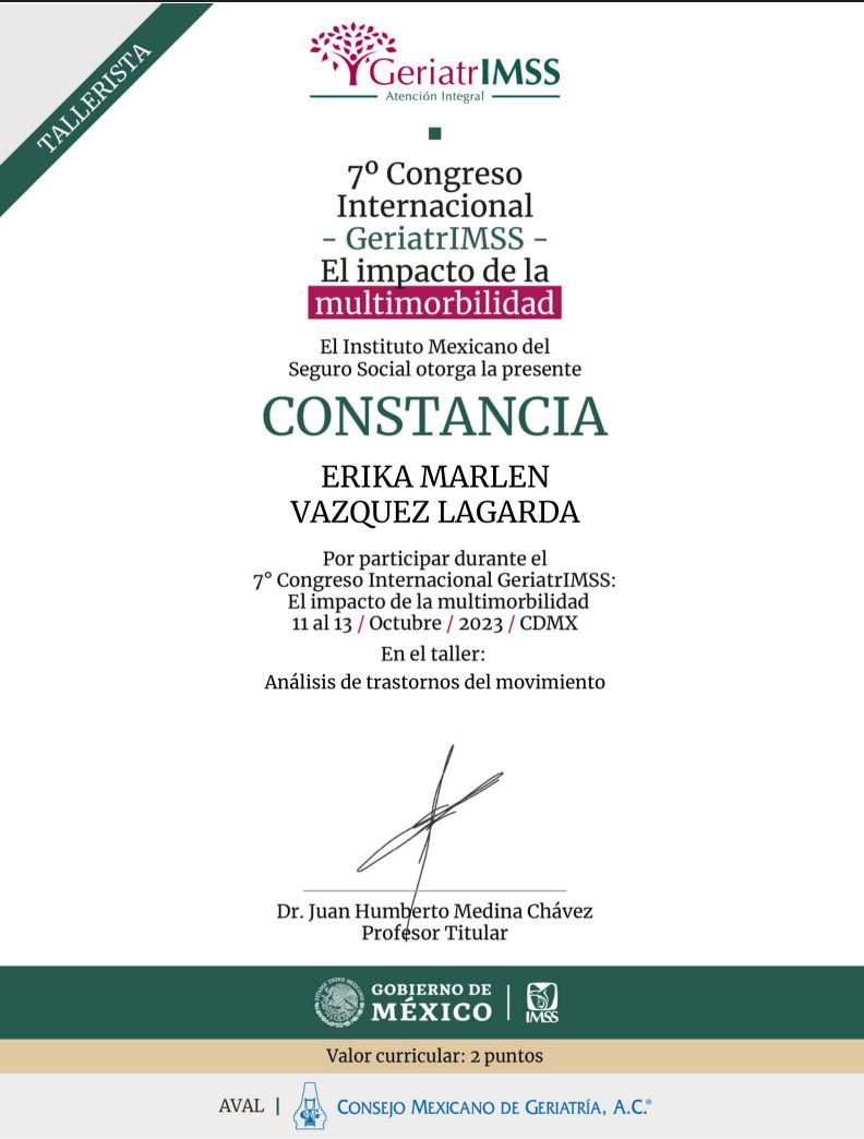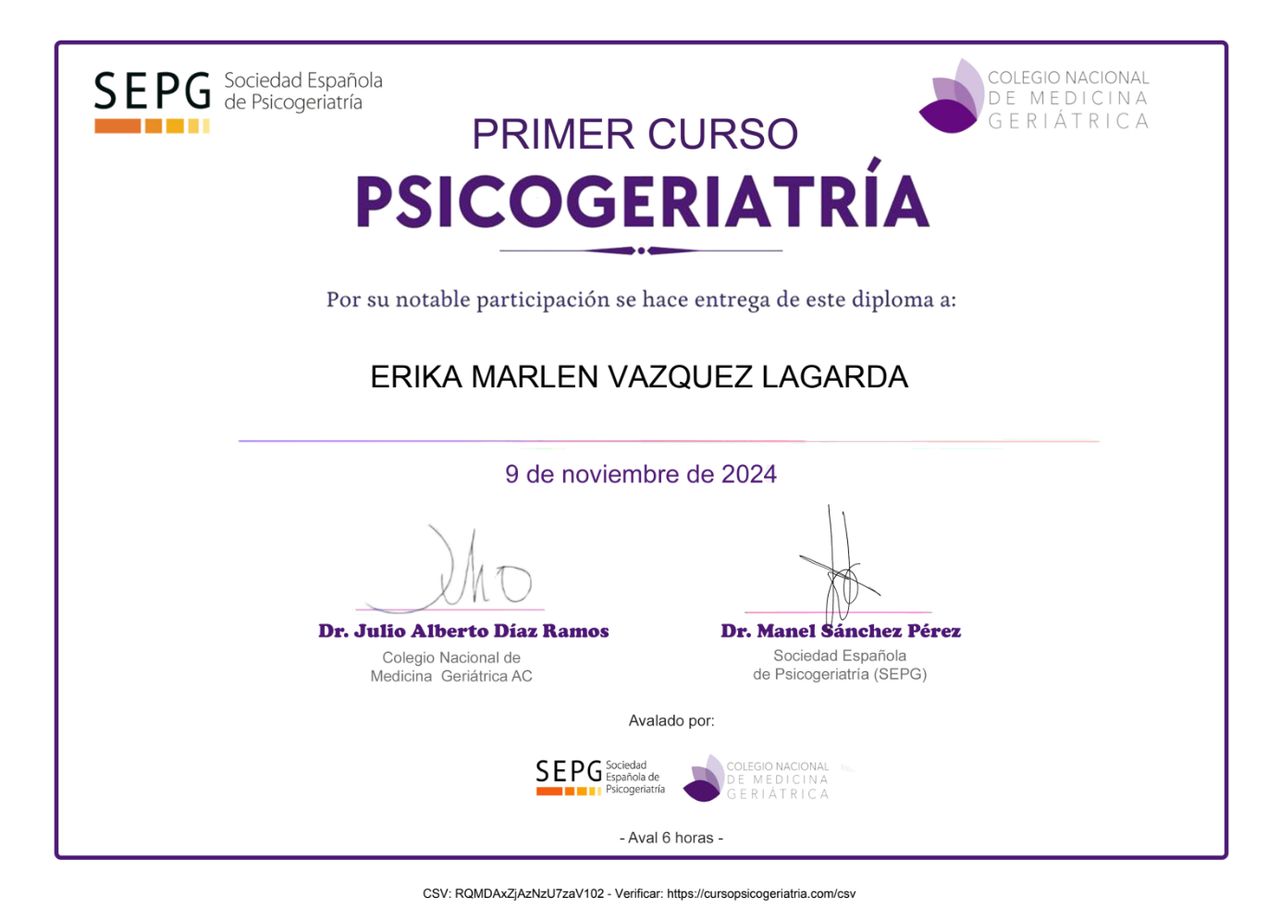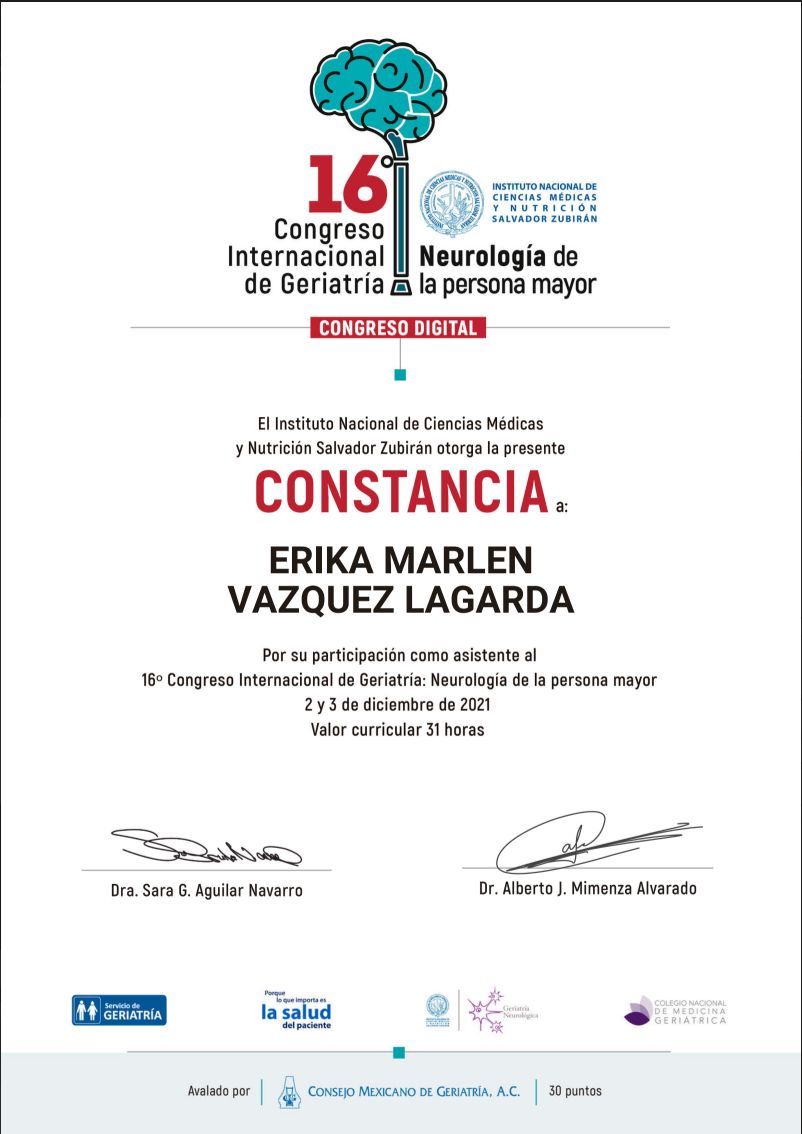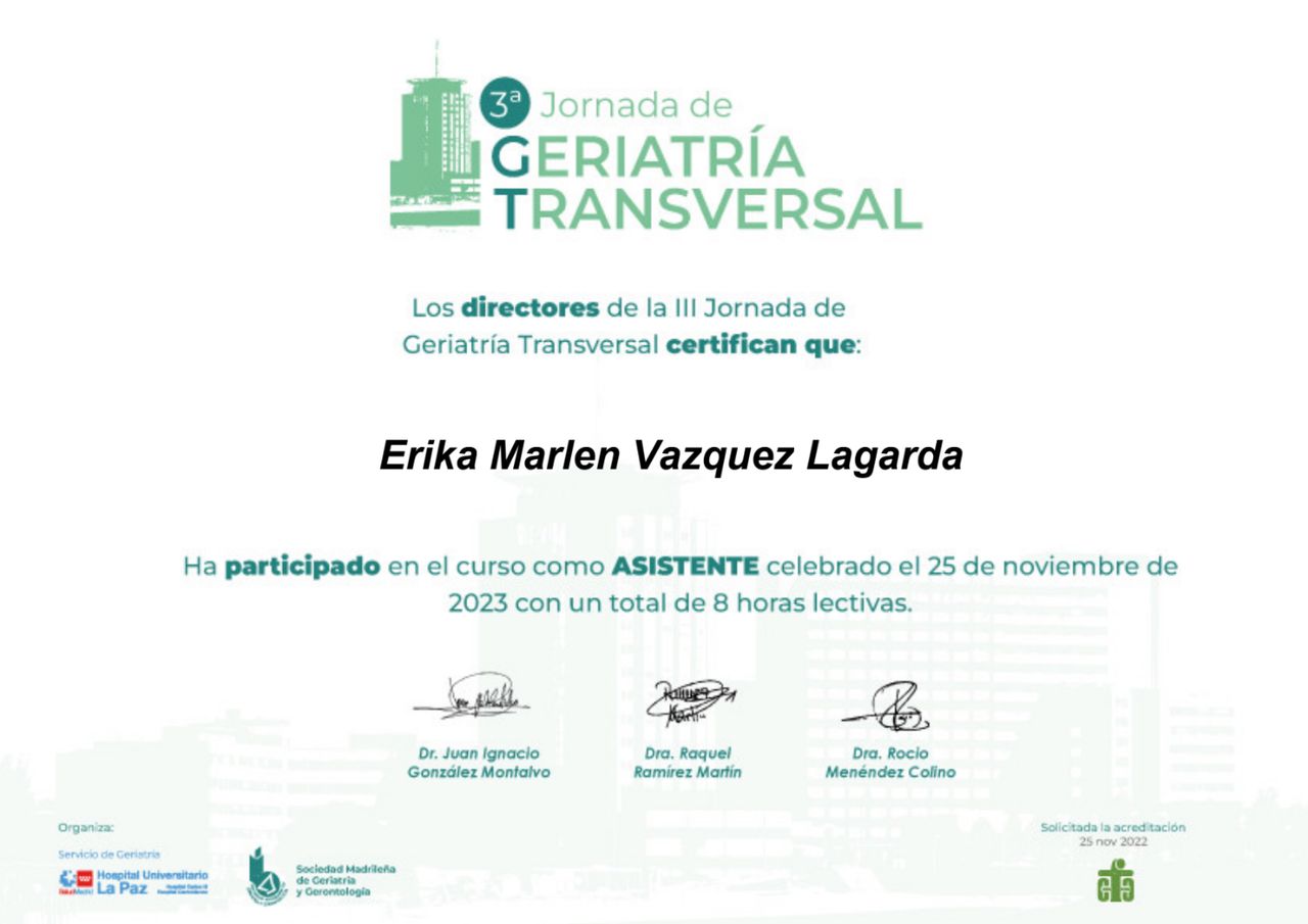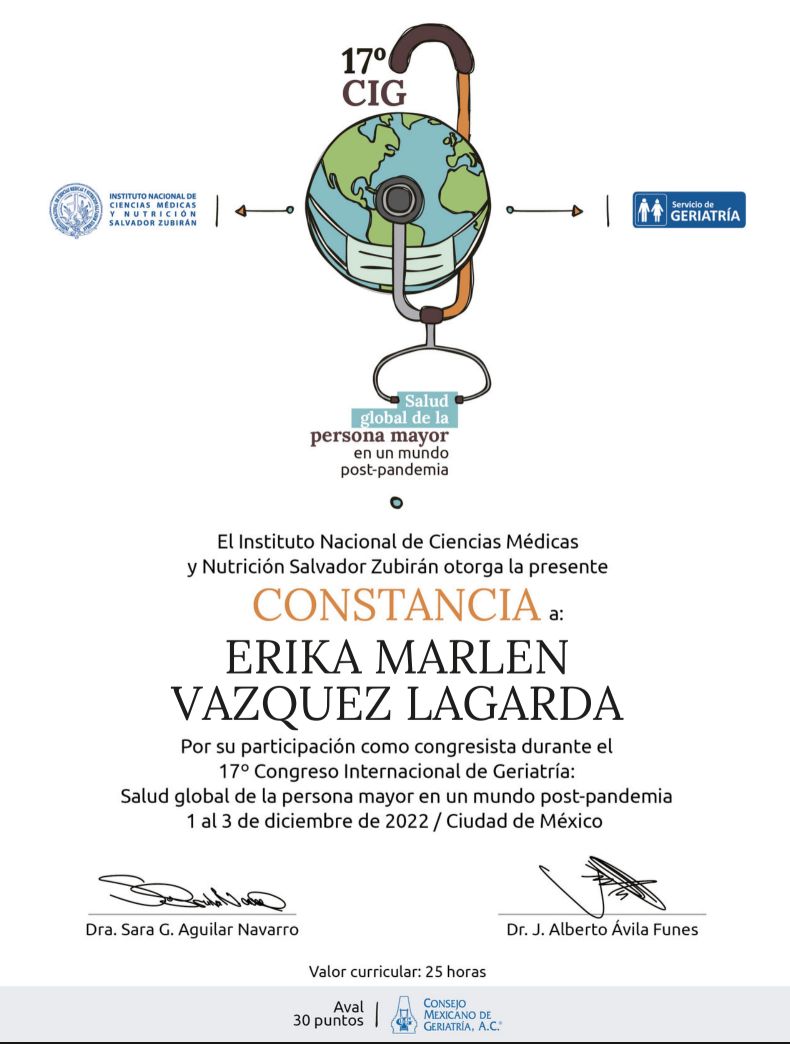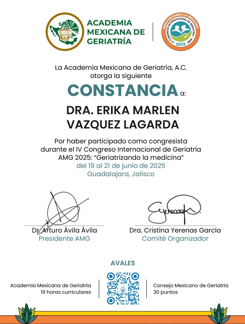 -Actualmente estoy Certificada por el Consejo Mexicano de Geriatría.