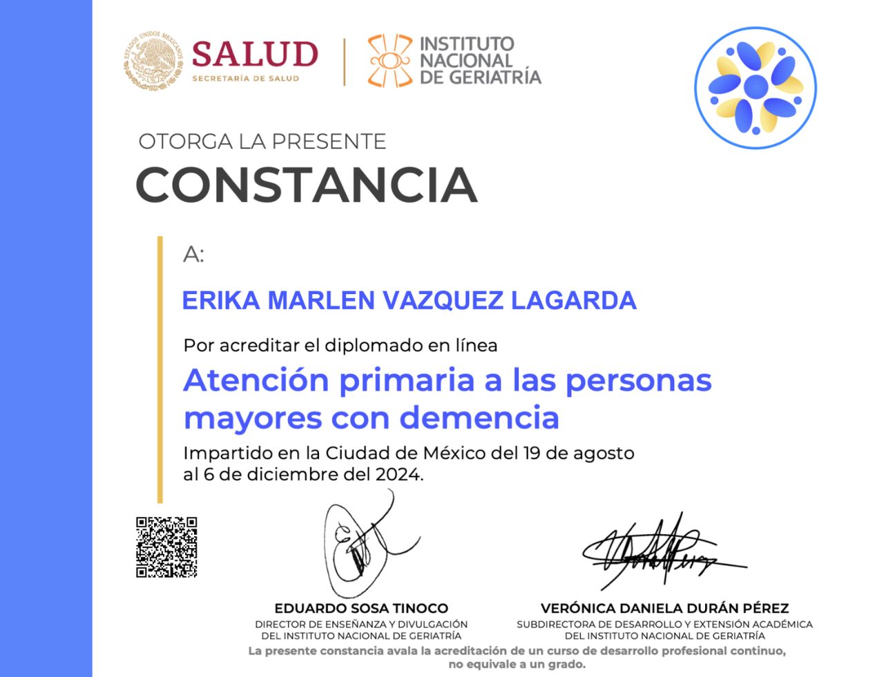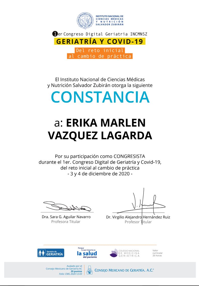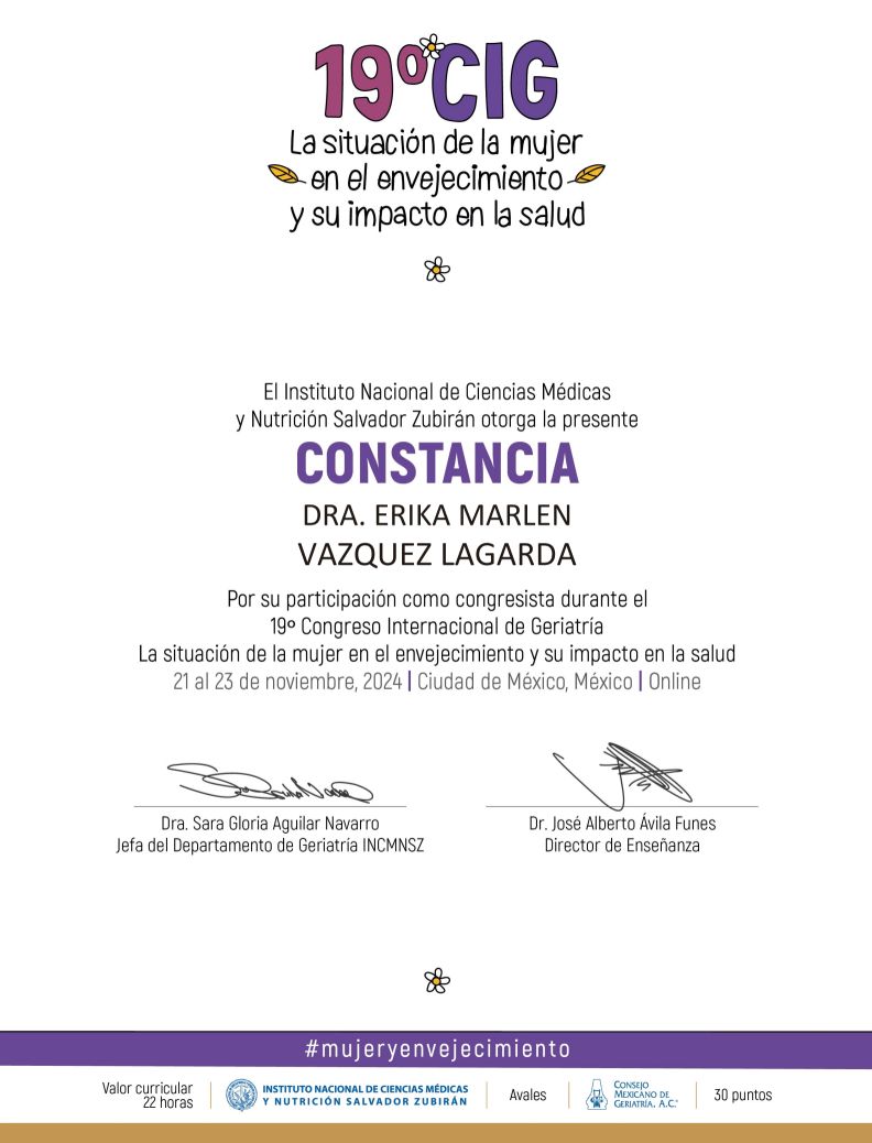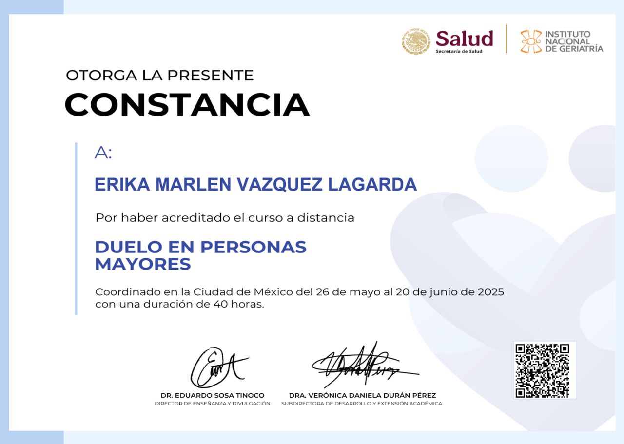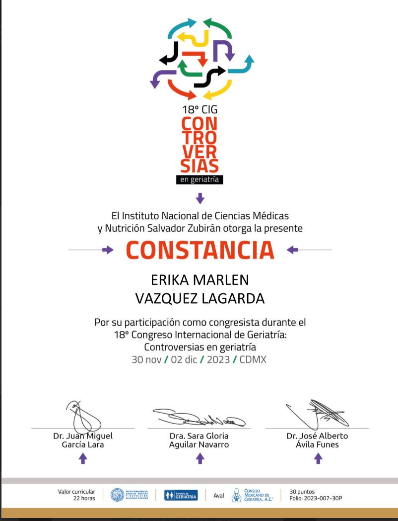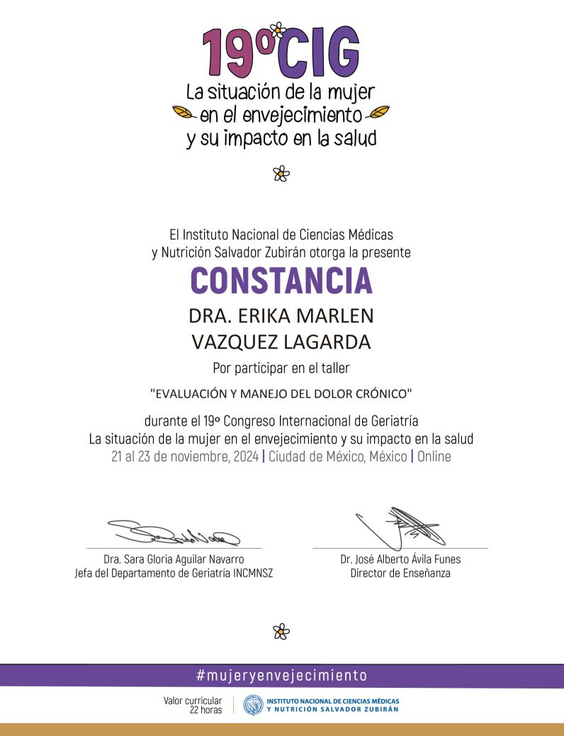 -Actualmente estoy Certificada por el Consejo Mexicano de Geriatría.