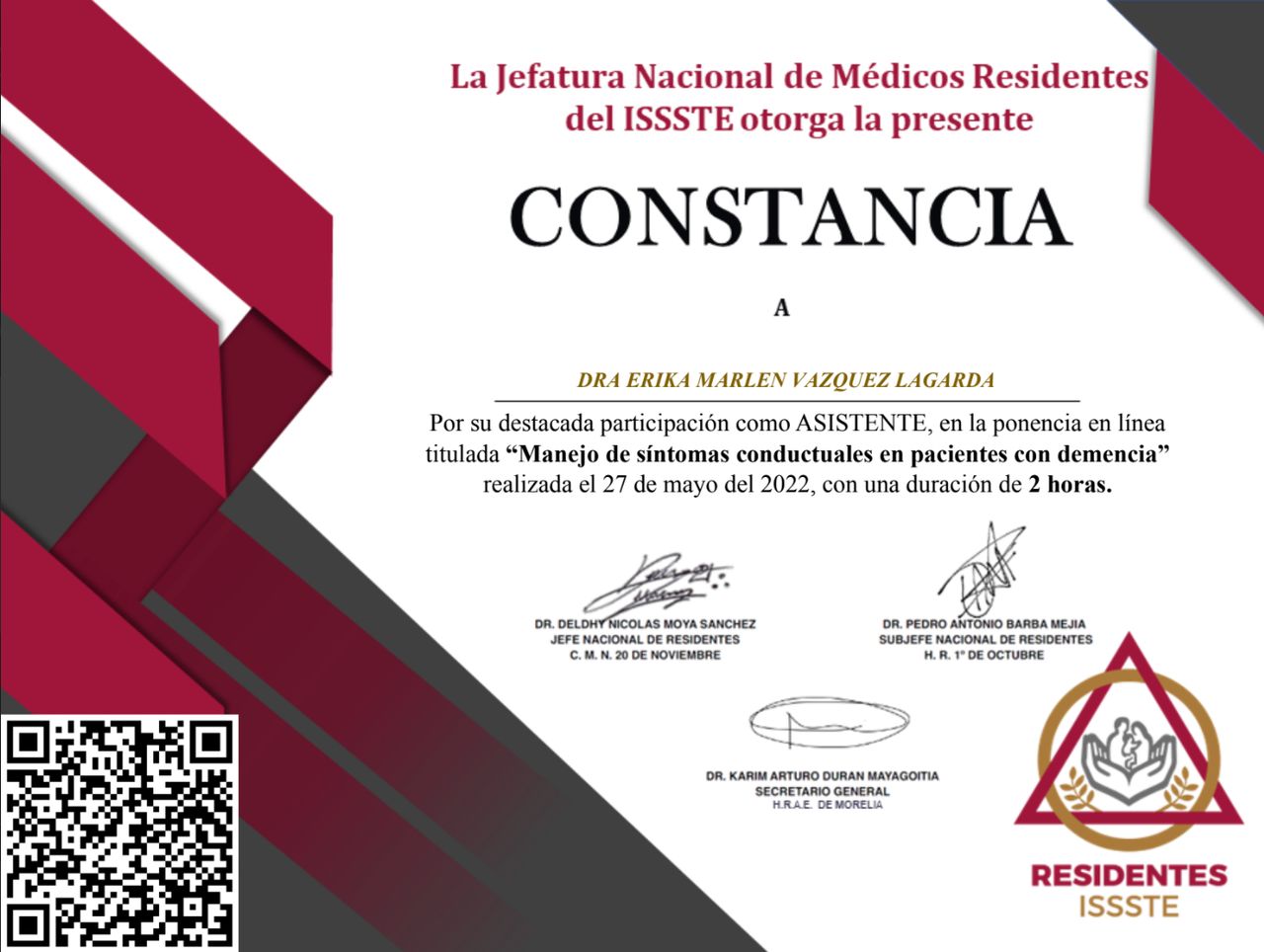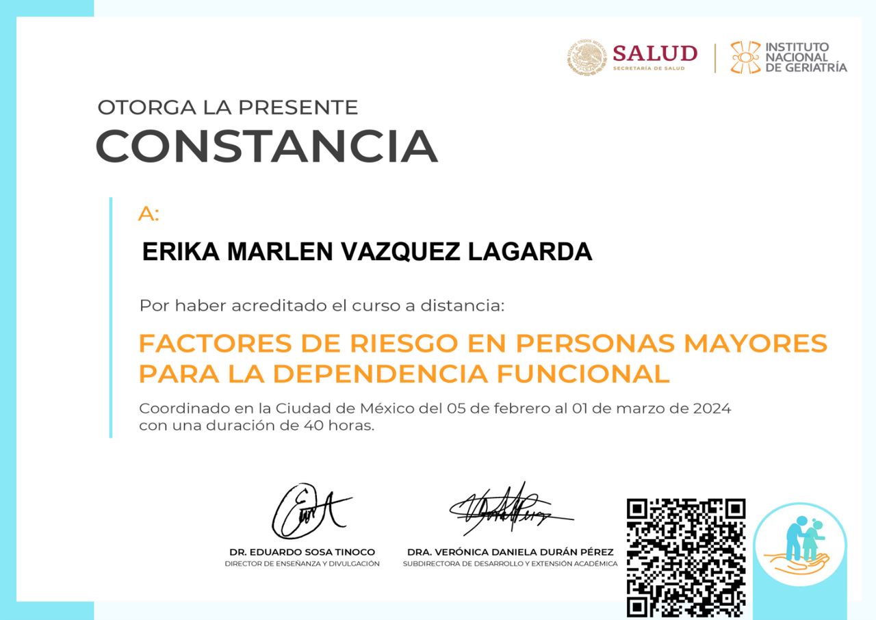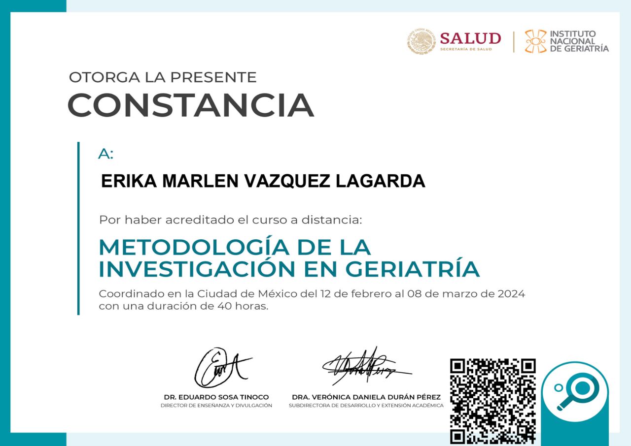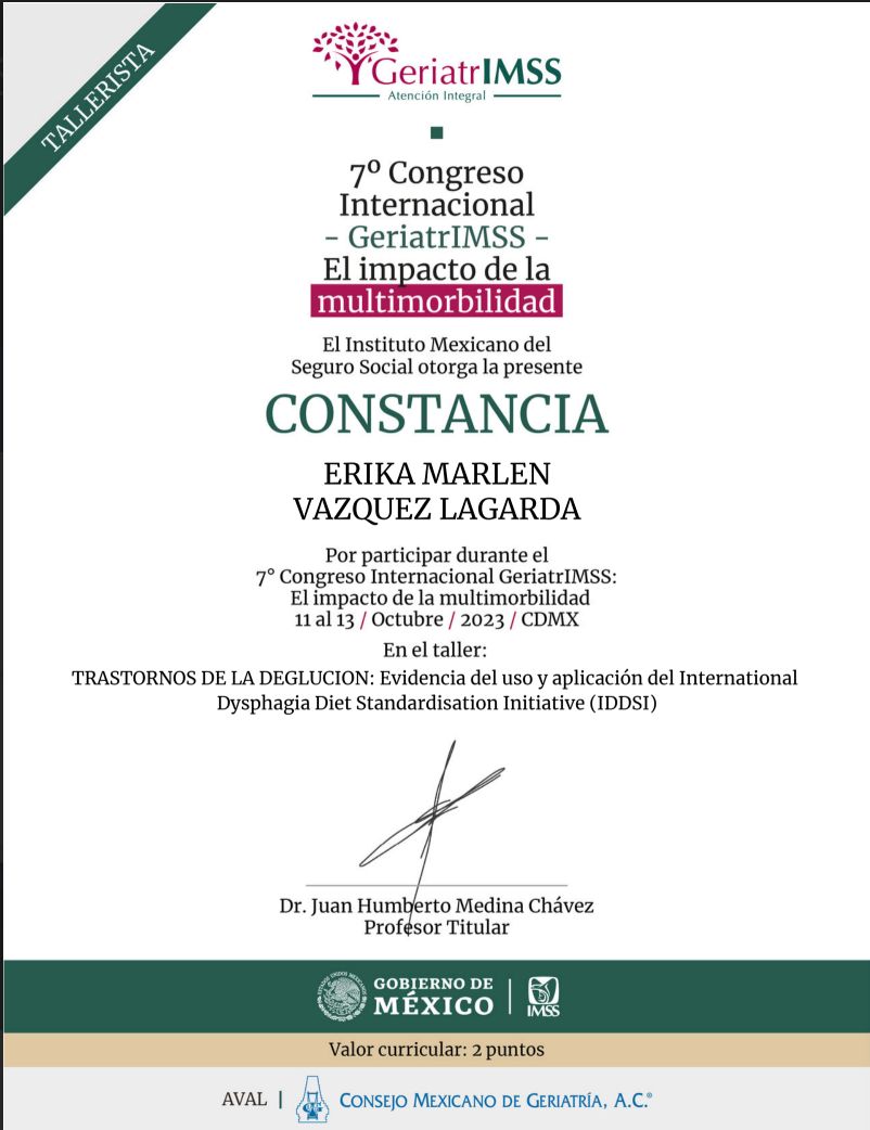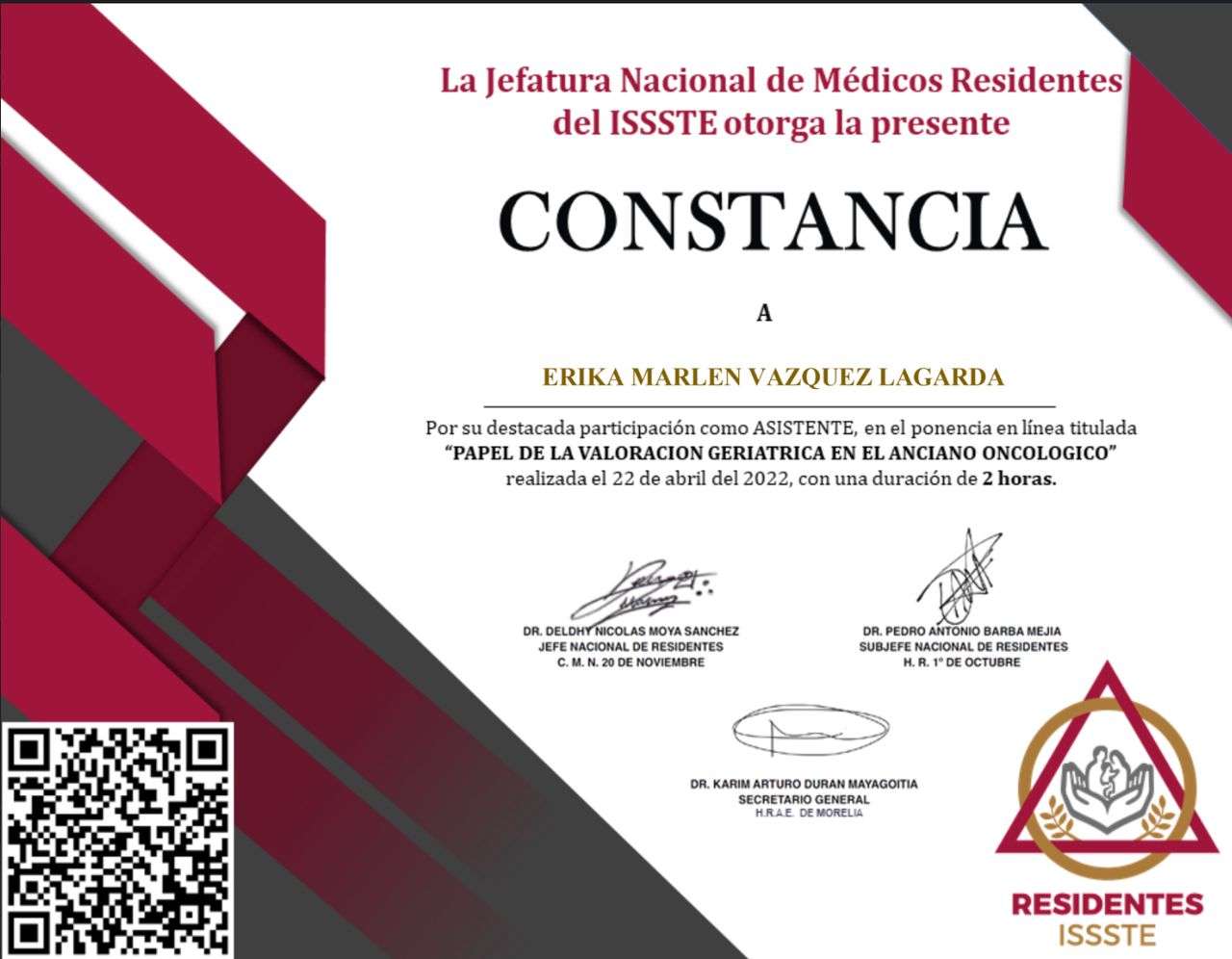 -Actualmente estoy Certificada por el Consejo Mexicano de Geriatría.
