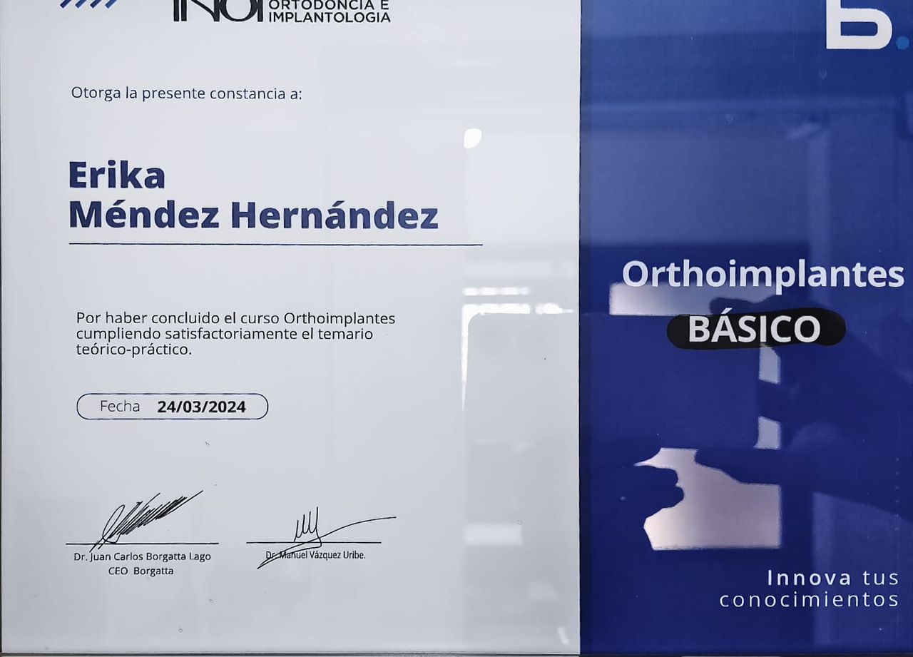 Mi nombre es Erika Méndez Hernández. Soy Odontóloga y especialista en Ortodoncia y Ortopedia Maxilar. Comprometida con la Salud Dental y Economía de cada uno de mis Pacientes. Brindando una atención cálida, humana y honesta. Desde hace más de 23 años. Brindamos servicios como: - Servicios Dentales - Ortodoncia (Brackets) - Ortopedia Maxilar - Endodoncia - Extracciones Dentales - Periodoncia - Odontología preventiva - Prótesis Dentales - Implantes dentales -Operatoria Dental (Resinas).