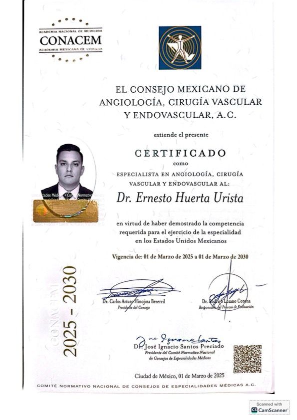 Mi nombre es Ernesto Huerta Urista soy egresado de la especialidad de Angiología, Cirugía Vascular y Endovascular de la UMAE Hospital de Cardiología No. 34 "Dr. Alfonso Treviño Treviño" IMSS en Monterrey, Nuevo León.