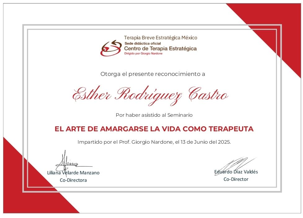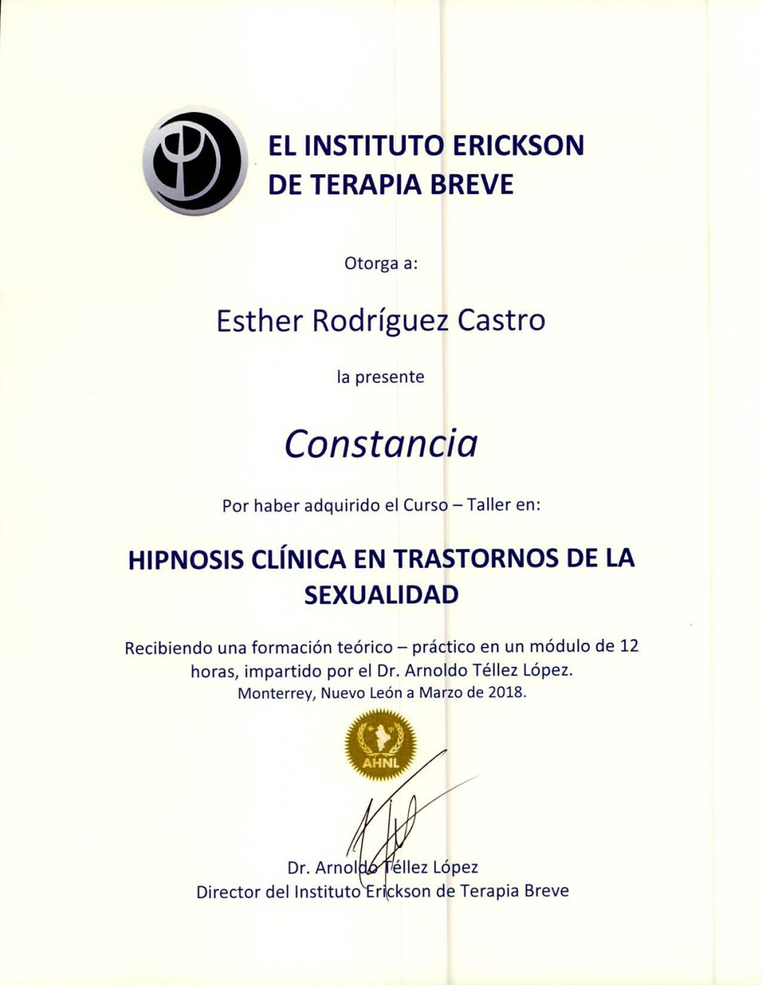 La Psicóloga Esther Rodríguez en una de las profesionales más eficaces de nuestro estado en dichas áreas de tratamiento con niños y adolescentes, a la par de sus especialidades cuenta con estudios de posgrado como la Maestría en Psicoterapia Breve Sistémica con Enfoque en Soluciones en la ciudad de Monterrey, Nuevo León y Diplomado en Hipnosis Clínica Ericksoniana, ya que atiende regularmente en terapia familiar y como complemento de sus intervenciones orientando a los padres para el desarrollo y crianza de los hijos y la construcción de la relación padres / hijos, plan de vida y carrera, etc. en la búsqueda de la plenitud familiar.