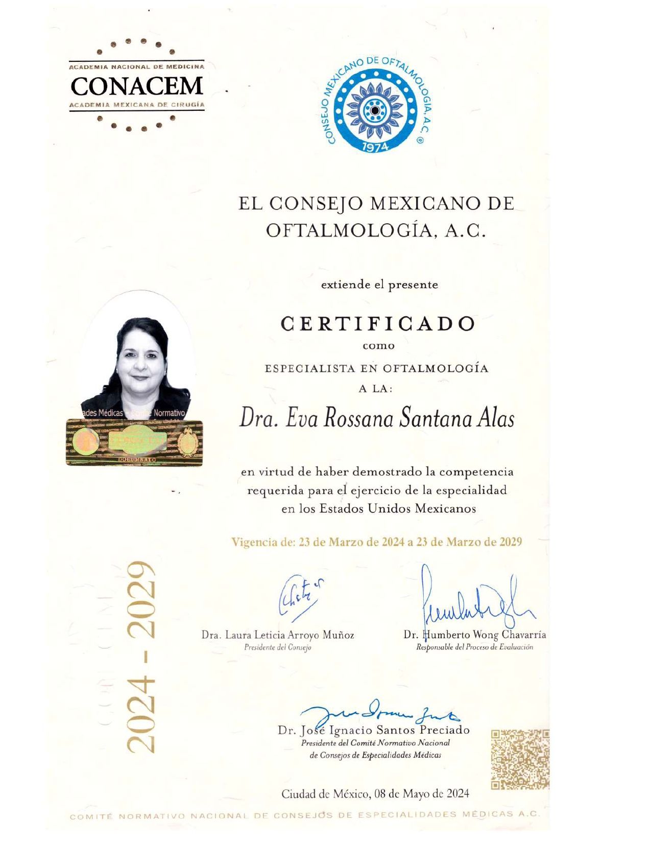 Soy Oftalmóloga certificada, con subespecialidad en vítreo-retina.