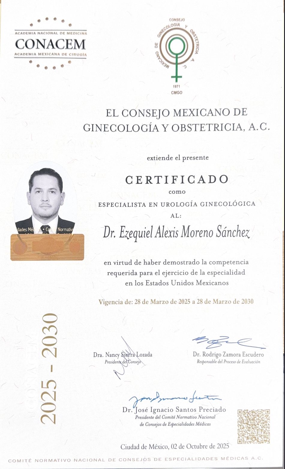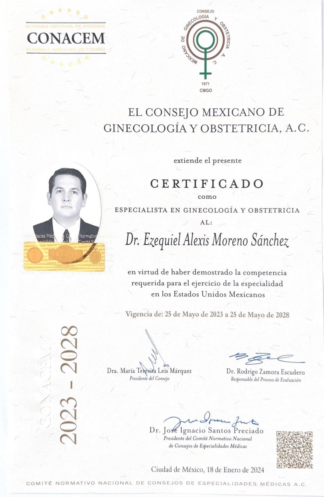 Certificado por el Consejo Mexicano de Ginecología y Obstetricia.