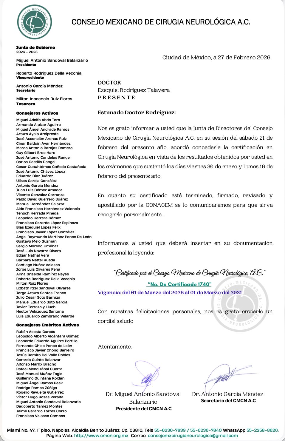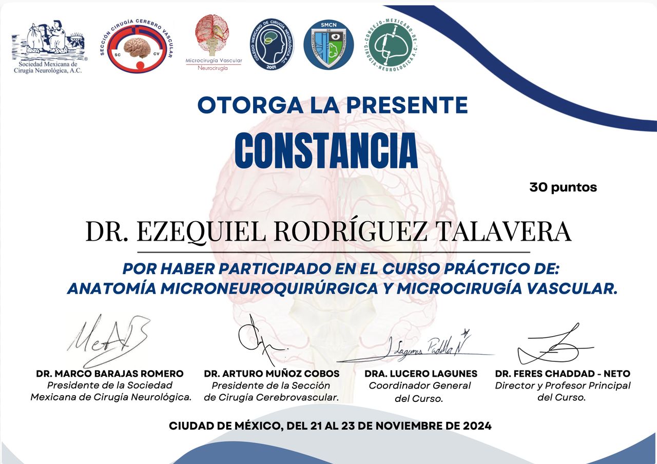 Neurocirujano en Mérida, Yucatán, con experiencia en cirugía de cerebro y columna. Especialista en el diagnóstico y tratamiento de tumores cerebrales, aneurismas, hemorragias intracraneales, hernia de disco y dolor lumbar.