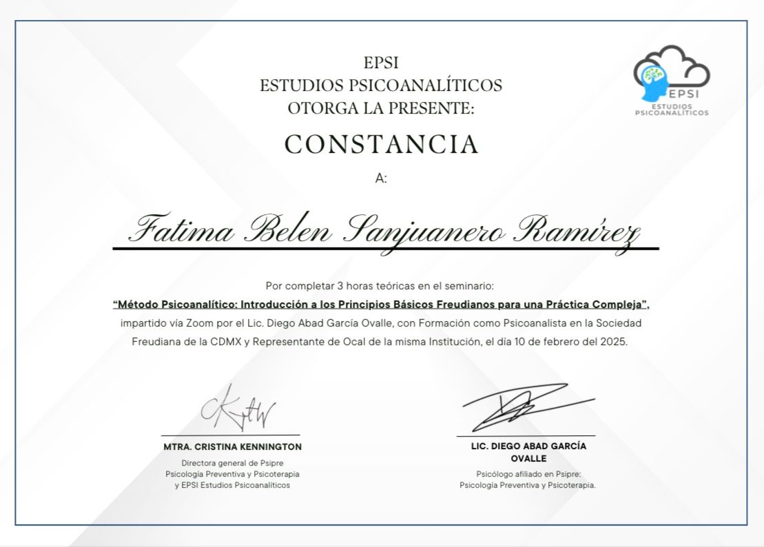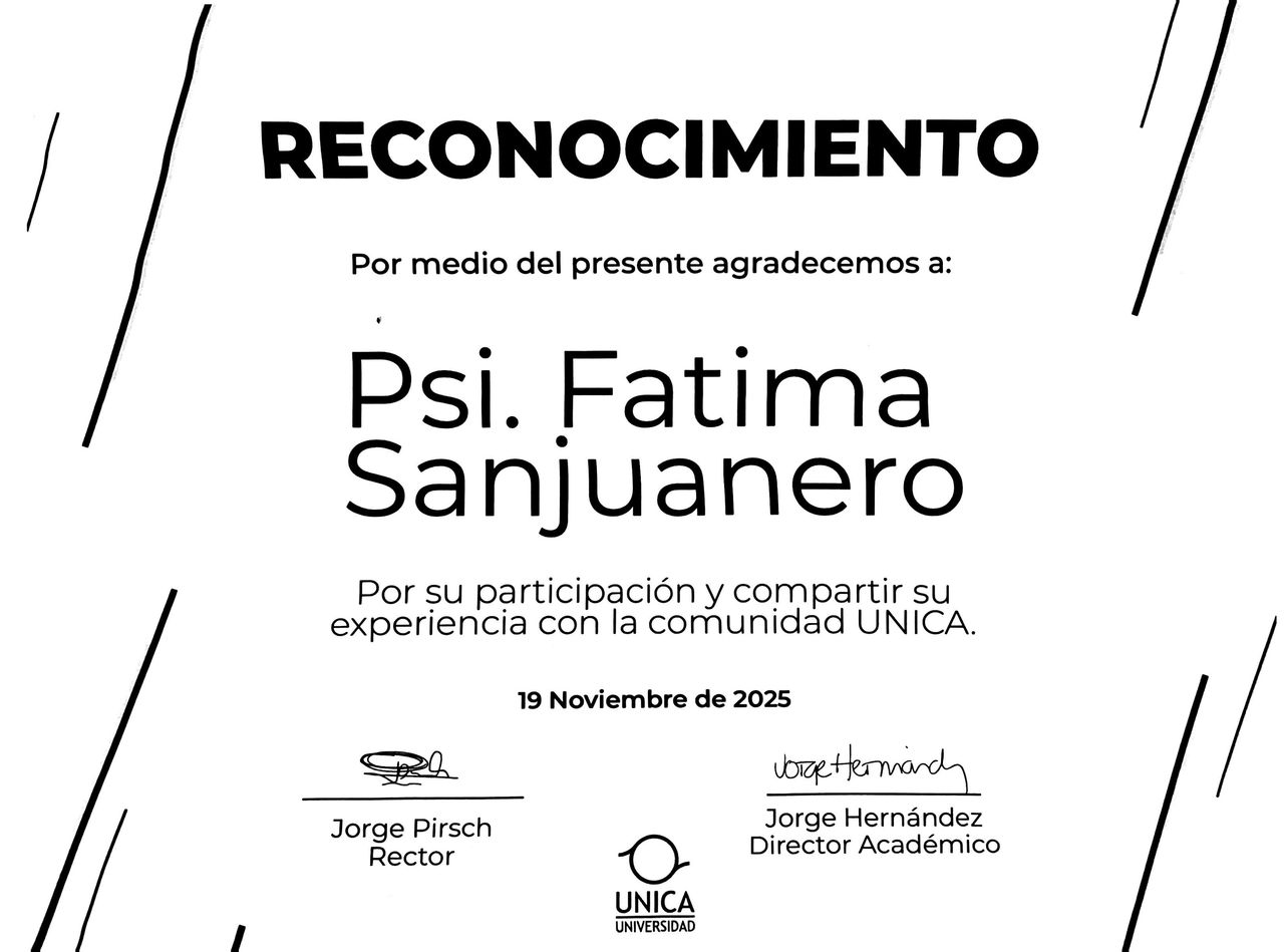 He tenido la oportunidad de tomar terapia con la Lic Fatima y no puedo estar más agradecido por su profesionalismo y dedicación.