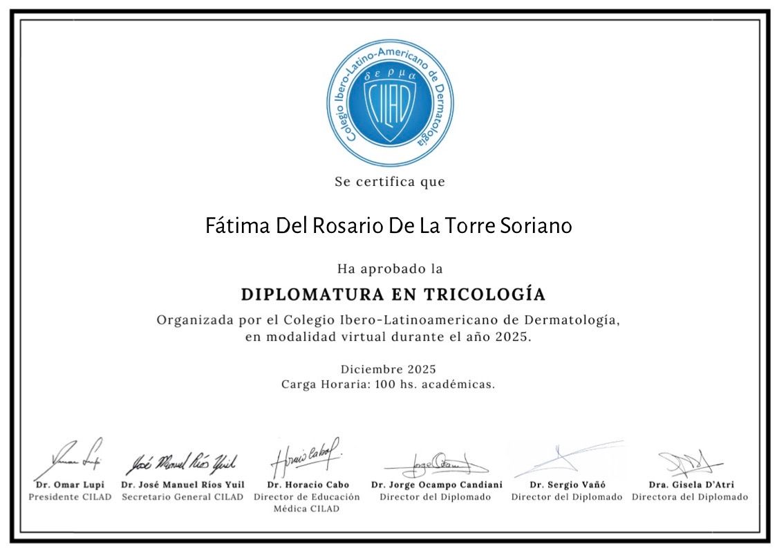He tenido excelentes resultados en mis tratamientos con la Doctora Fátima (acné, caída del cabello y onicomicosis). Explica detalladamente el procedimiento a seguir y resuelve todas las dudas.