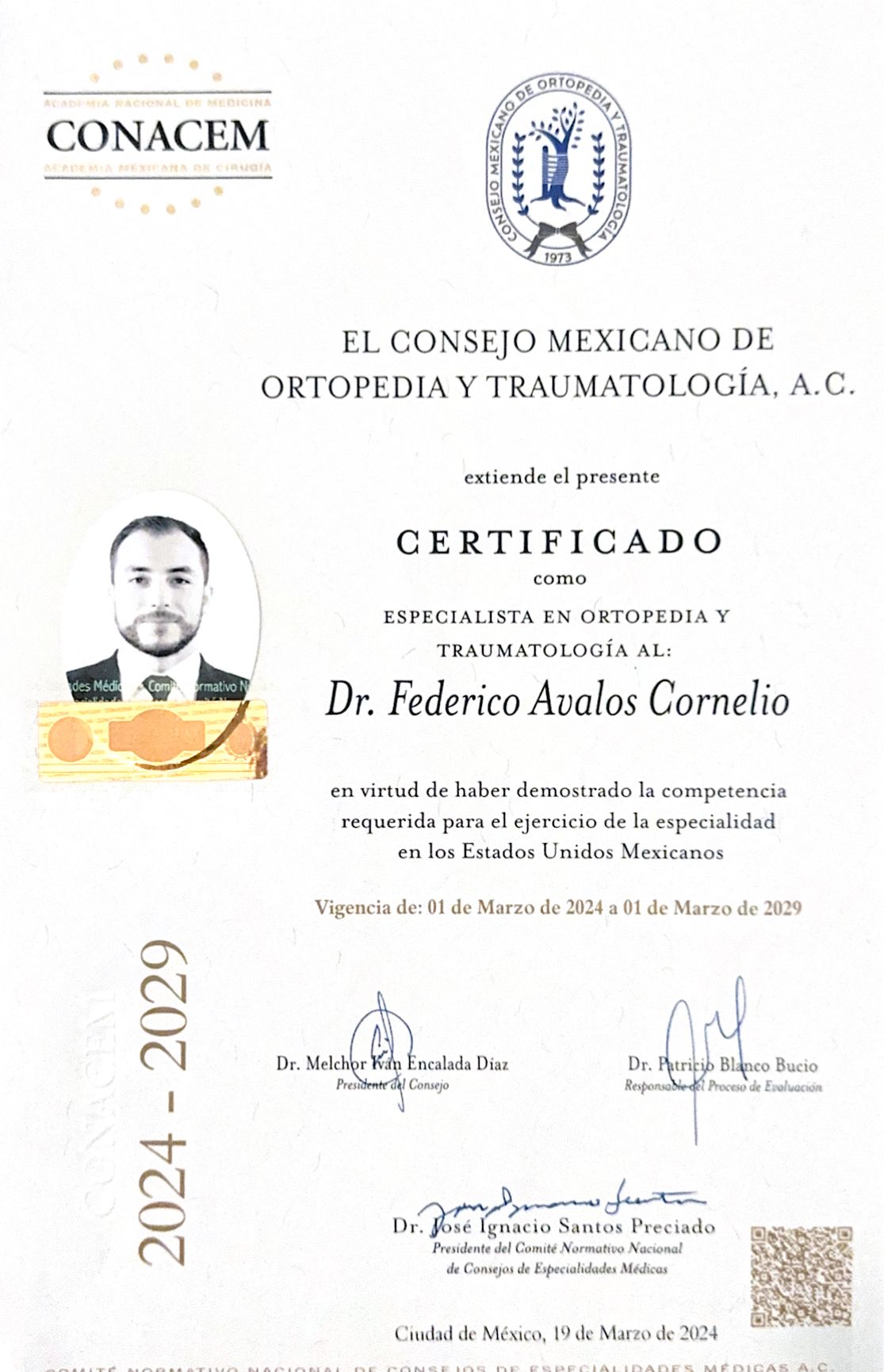 Certificado por el Colegio Mexicano de Ortopedia y CONACEM