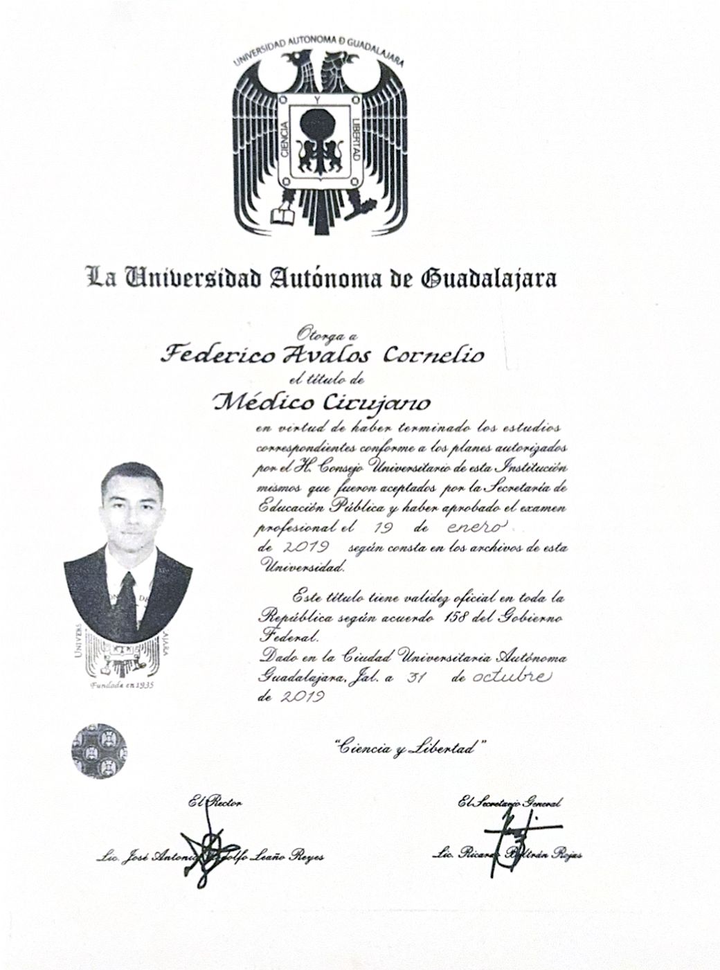 Médico General egresado de la Universidad Autónoma de Guadalajara