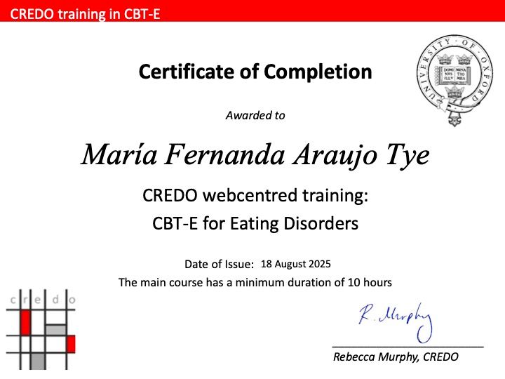 Tengo experiencia y conocimiento en personas con ansiedad, depresión, problemas familiares, problemas de pareja, problemas en el estado de ánimo, entre otros temas, brindando un enfoque holístico y adaptado a cada caso. Actualmente curso la maestría en terapia cognitivo conductual.