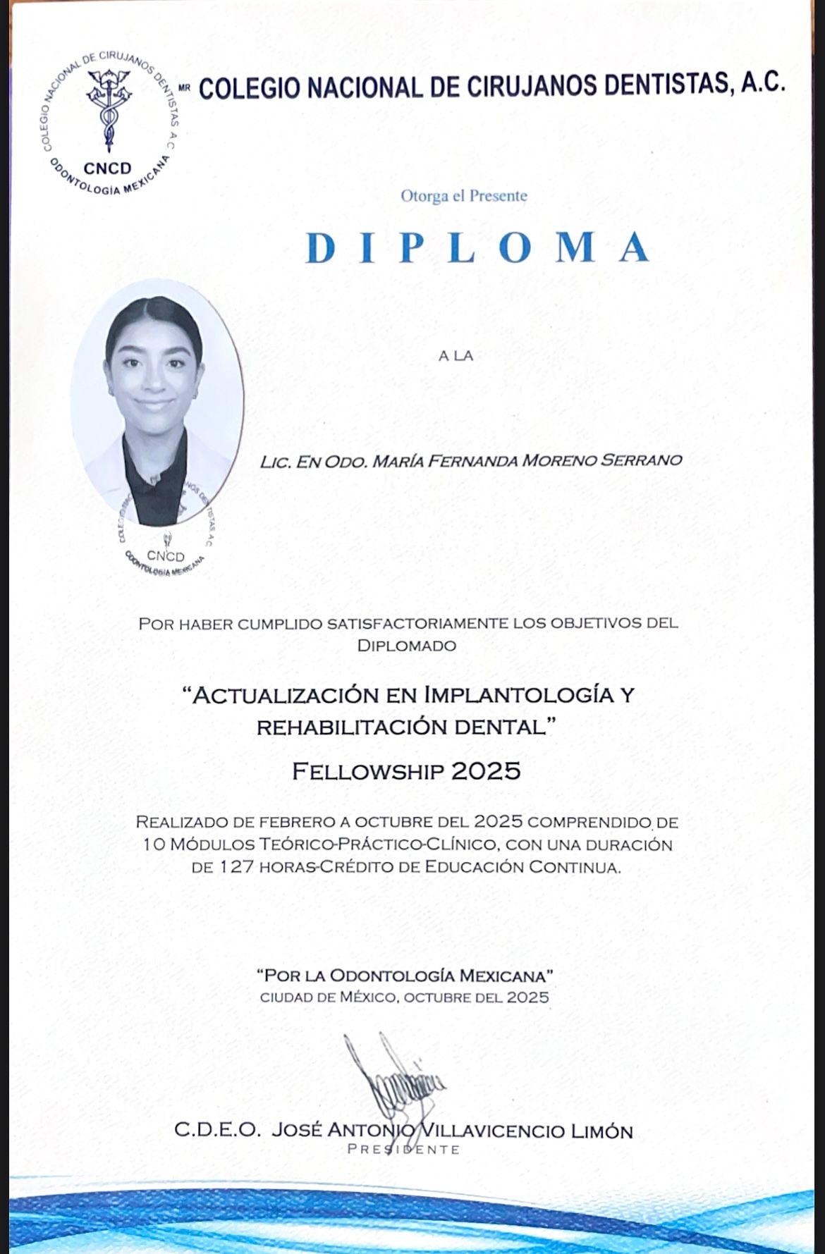 La Dra. Fernanda es una excelente profesional y sin duda la mejor dentista que he tenido. Me ha atendido en múltiples procedimientos, comenzando por dos implantes dentales cuya cirugía fue exitosa, indolora y sorprendentemente rápida. También he tenido con ella una incrustación dental, limpiezas, atención de caries, restauraciones posteriores a endodoncia y próximamente estaremos trabajando en mi diseño de sonrisa.