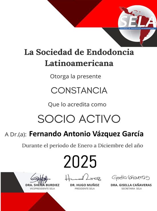 Certificado por el Consejo Mexicano de Endodoncia.