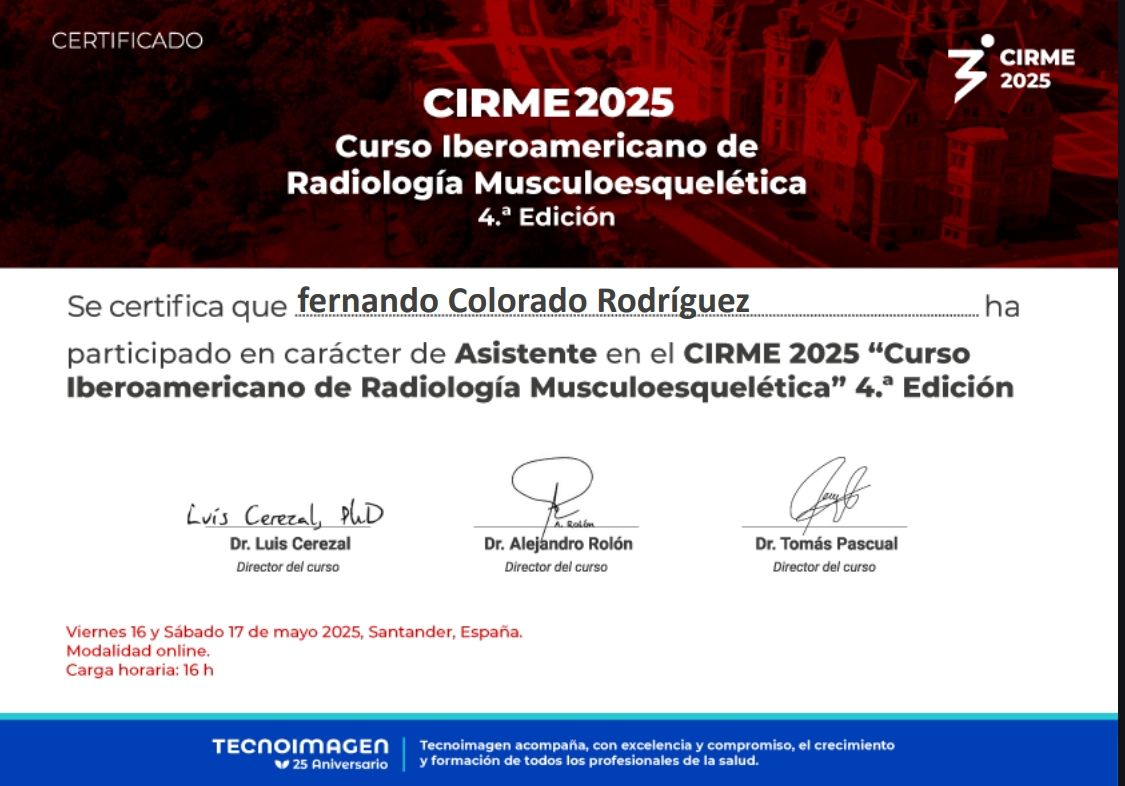 Médico Radiólogo experto en musculoesquelético y Doppler.
