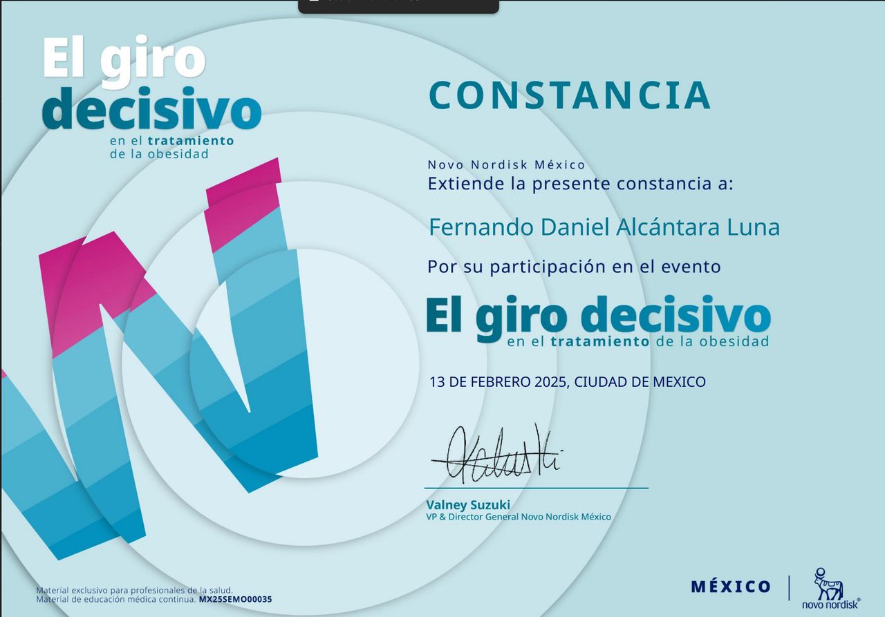 Buen día, me presento con usted, soy el Dr. Fernando Daniel Alcántara Luna, soy médico cirujano egresado de la Facultad de Medicina de la Universidad Nacional Autónoma de México. También soy Médico Internista egresado del Hospital de Especialidades del Centro Médico Nacional Siglo XXI y médico certificado por el Consejo Mexicano de Medicina interna.