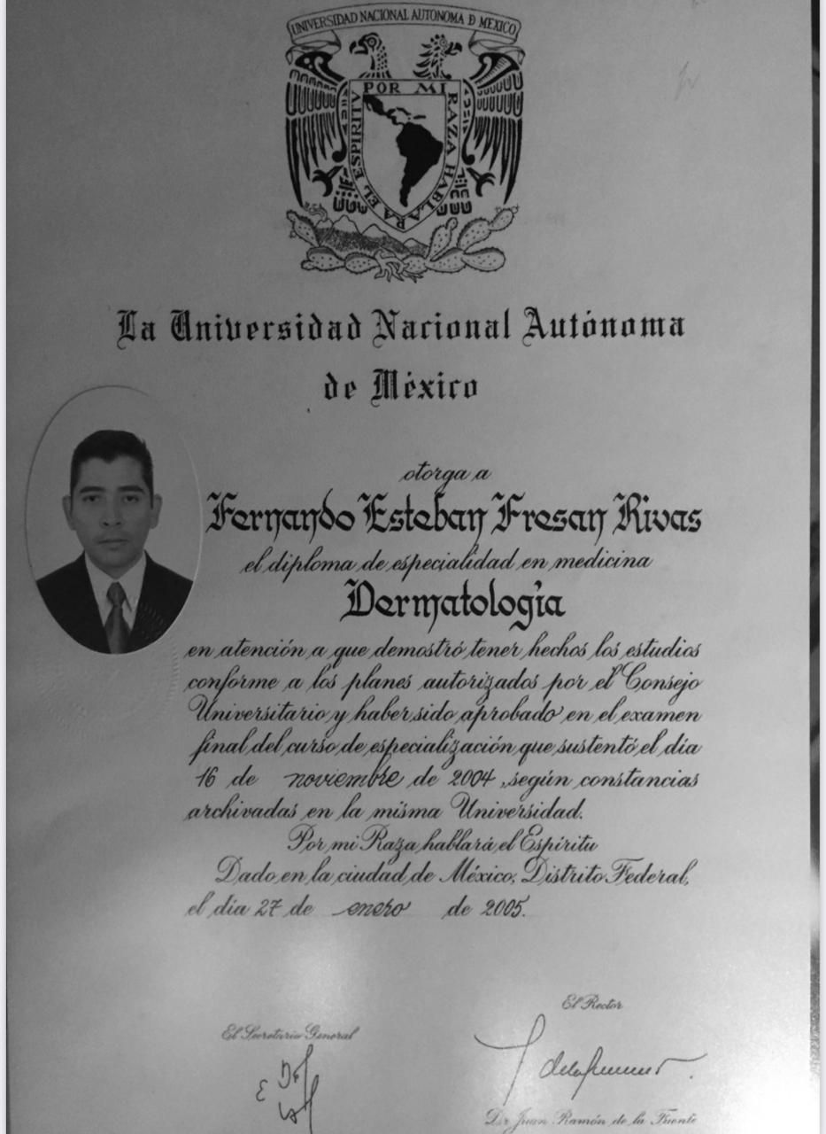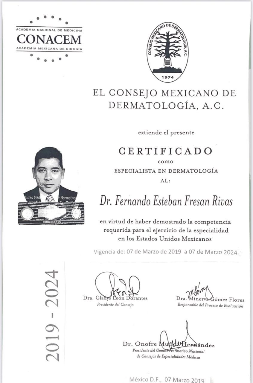 Soy el Dr. Fernando Esteban Fresan Rivas, médico especialista en Dermatología, Dermato-oncología, Cirugía Dermatológica y Procedimientos Estéticos Dermatológicos, con más de 20 años de experiencia en el diagnóstico, tratamiento y seguimiento de enfermedades de la piel, pelo y uñas.