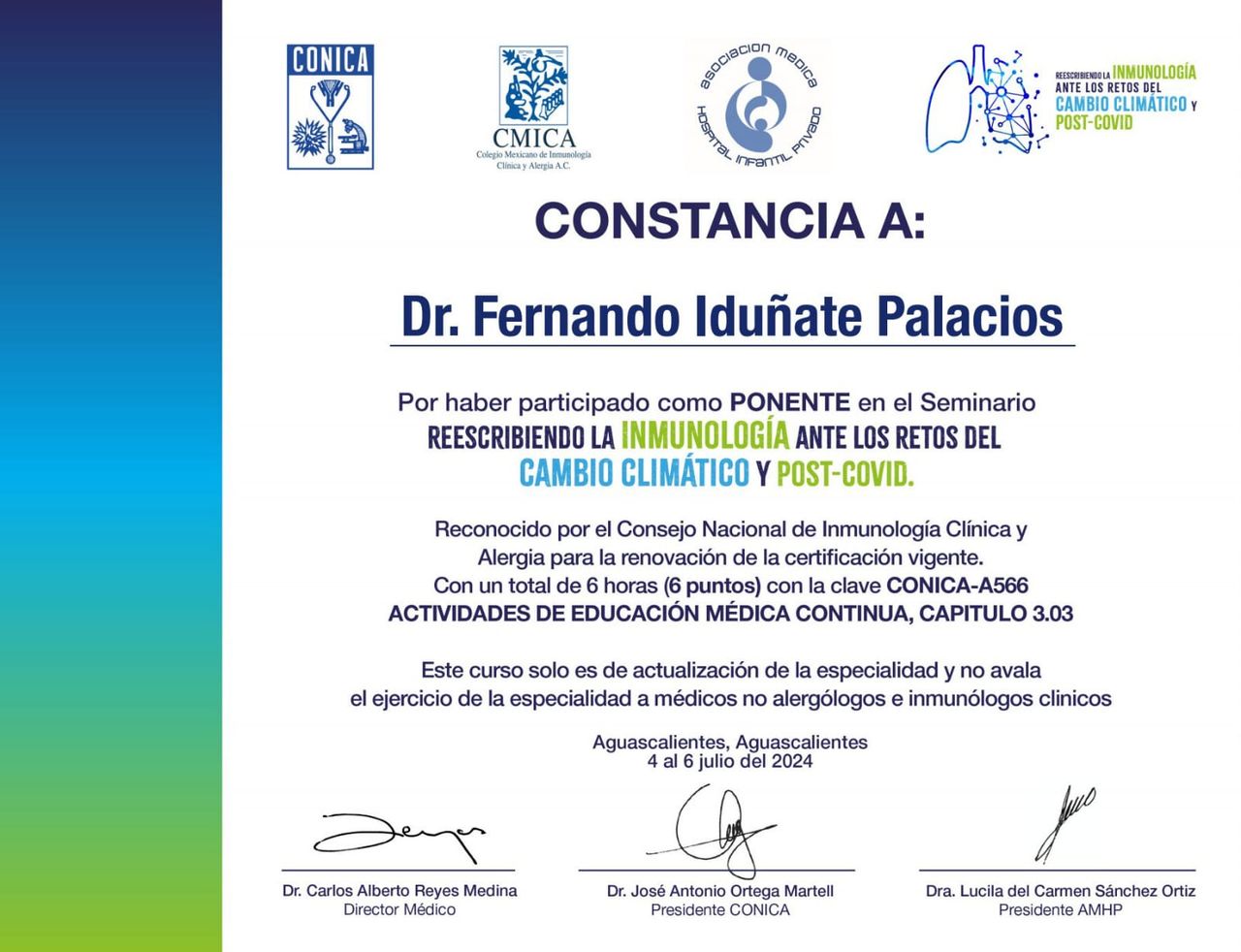 He participado como conferencista en congresos nacionales e internacionales siempre comprometido con la actualización medica continua para ofrecer a mis pacientes atención basada en evidencia científica con un enfoque humano
