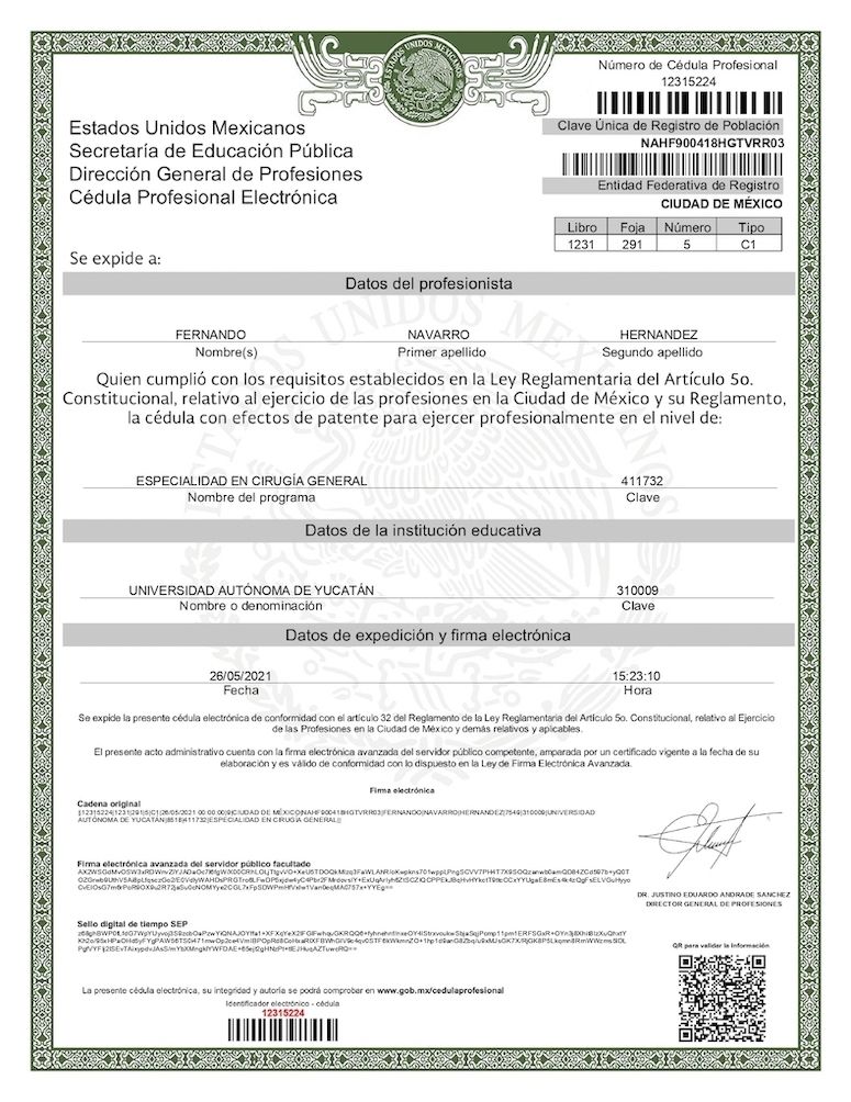 El número de registro profesional garantiza tu seguridad. Los profesionales de la salud deben contar con un cédula profesional para sus especialidades. Si no encuentras el registro del profesional, puedes consultarlo aquí: cedulaprofesional.sep.gob.mx