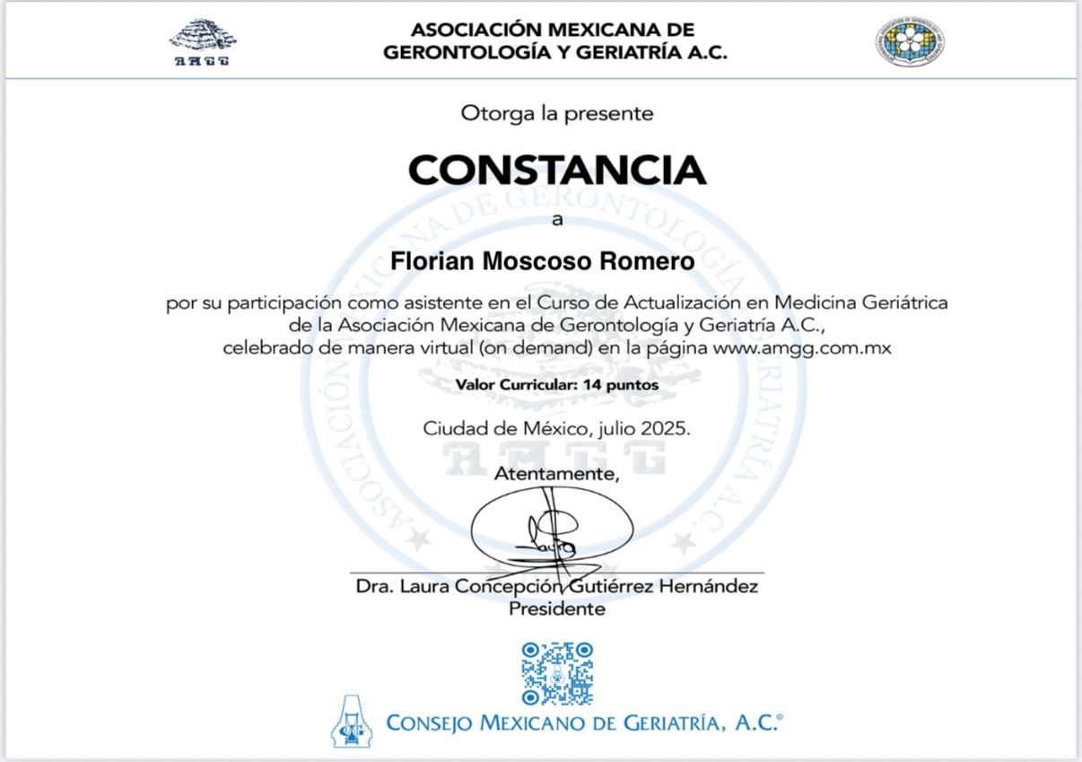 Me enfoco en la prevención, diagnóstico y tratamiento oportunos de los padecimientos presentes en el adulto mayor, por medio de la valoración geriátrica integral del paciente se realiza un plan individualizado que se ajuste de la mejor manera al paciente y sus necesidades, con intención de mantener y mejorar su salud y calidad de vida.