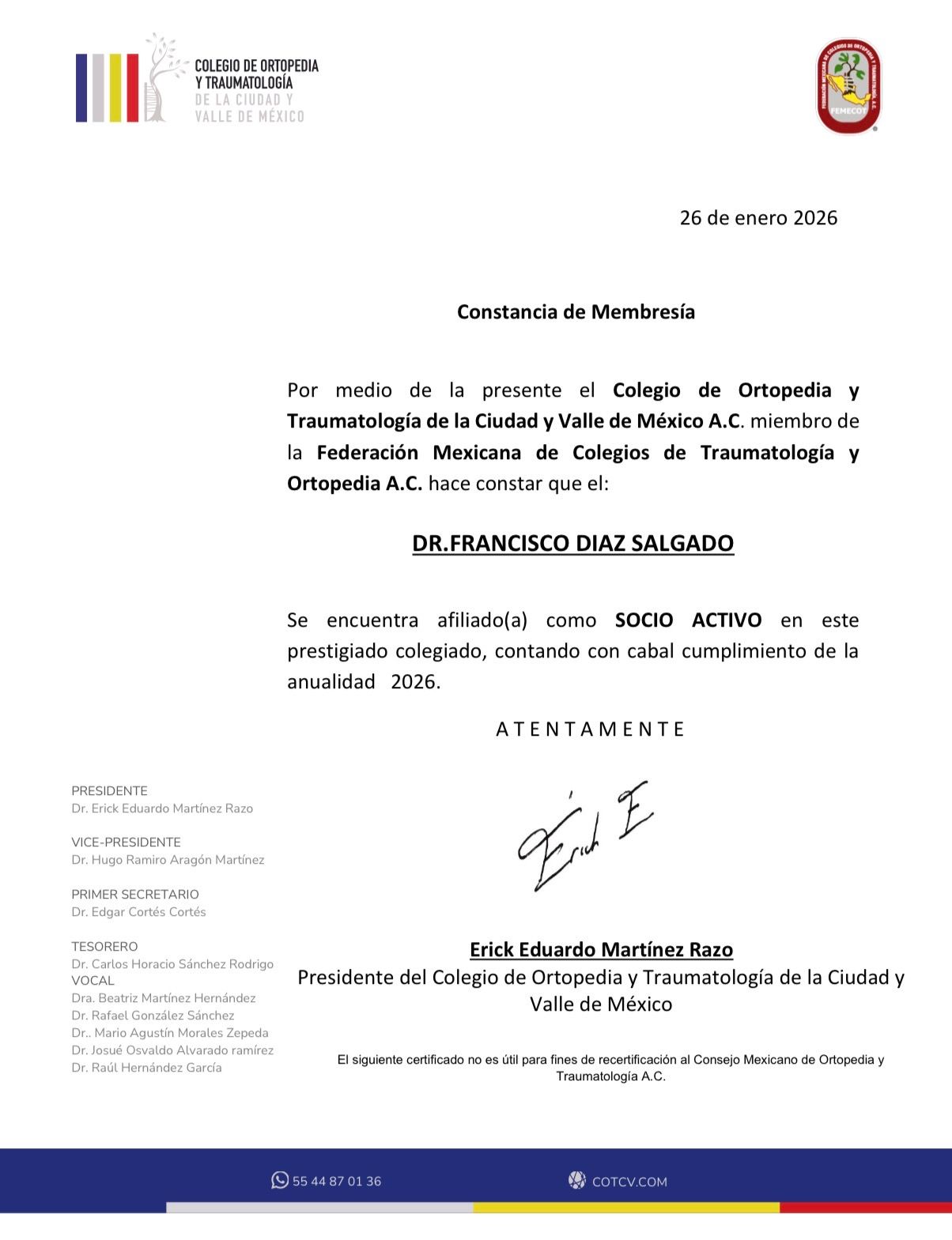 • Hospital Ángeles Metropolitano Consultorio 630A • Primera visita Ortopedia •