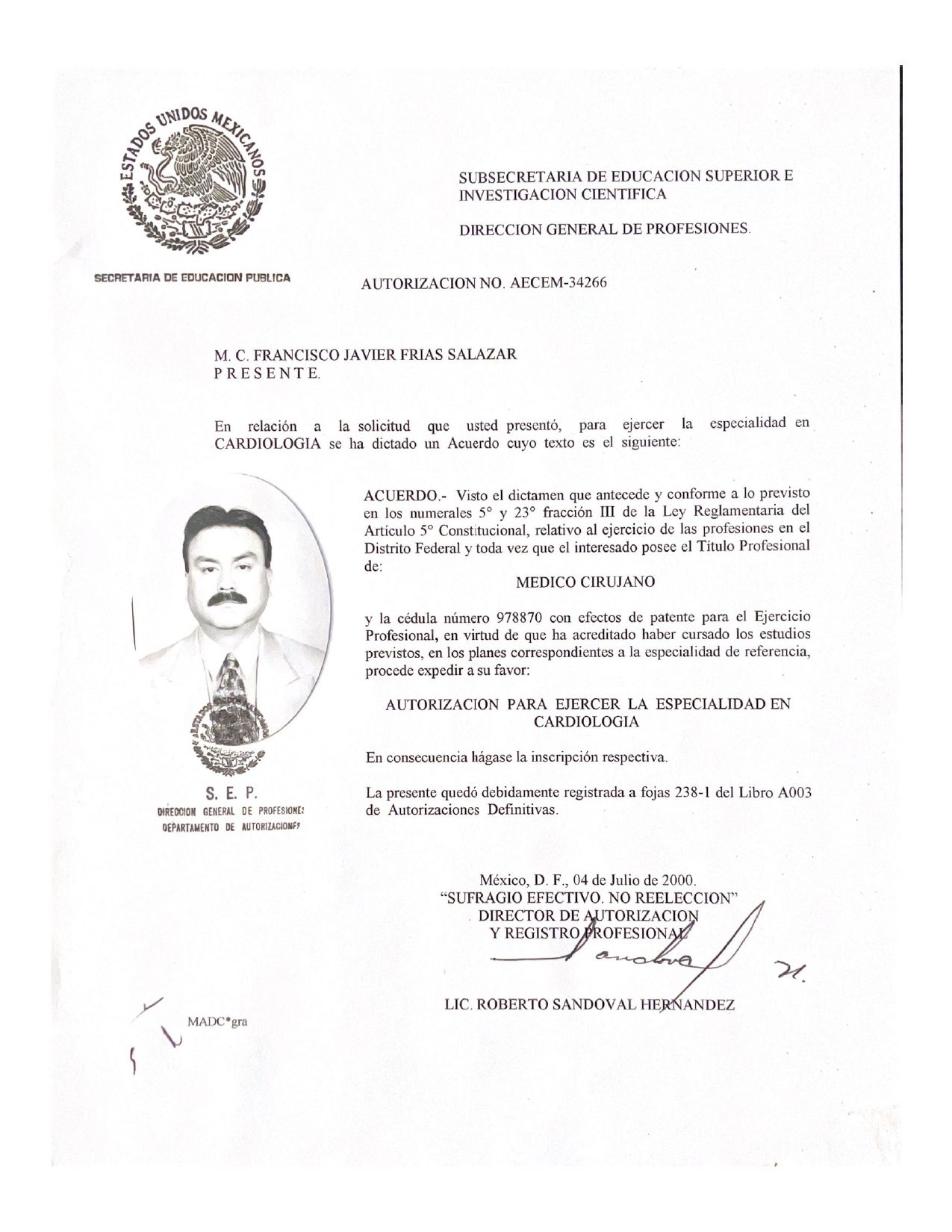Profesor Asociado, Residencia Cardiologia UMAE 34 IMSS 1995-2013.