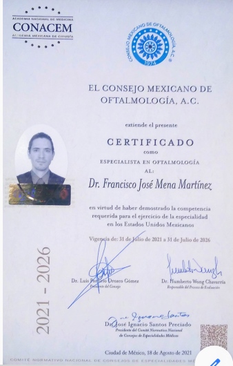Certificación ICO (INTERNATIONAL COUNCIL OF OPHTHALMOLOGY) 2019