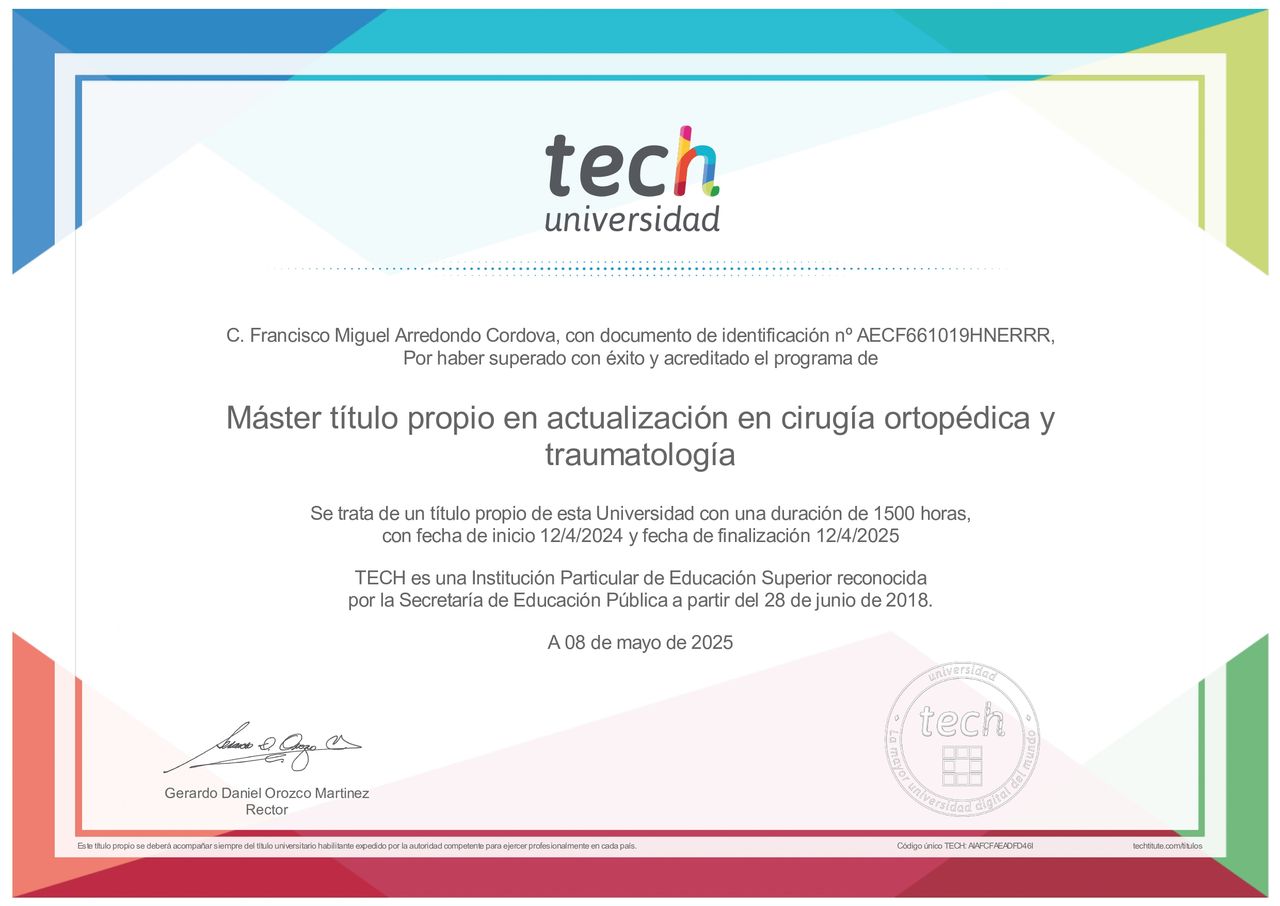 Soy el Dr. Francisco Miguel Arredondo Córdova, médico especialista en Ortopedia y Traumatología con más de 30 años de experiencia en la práctica clínica. Me dedico al diagnóstico, tratamiento y rehabilitación de enfermedades del sistema musculoesquelético.