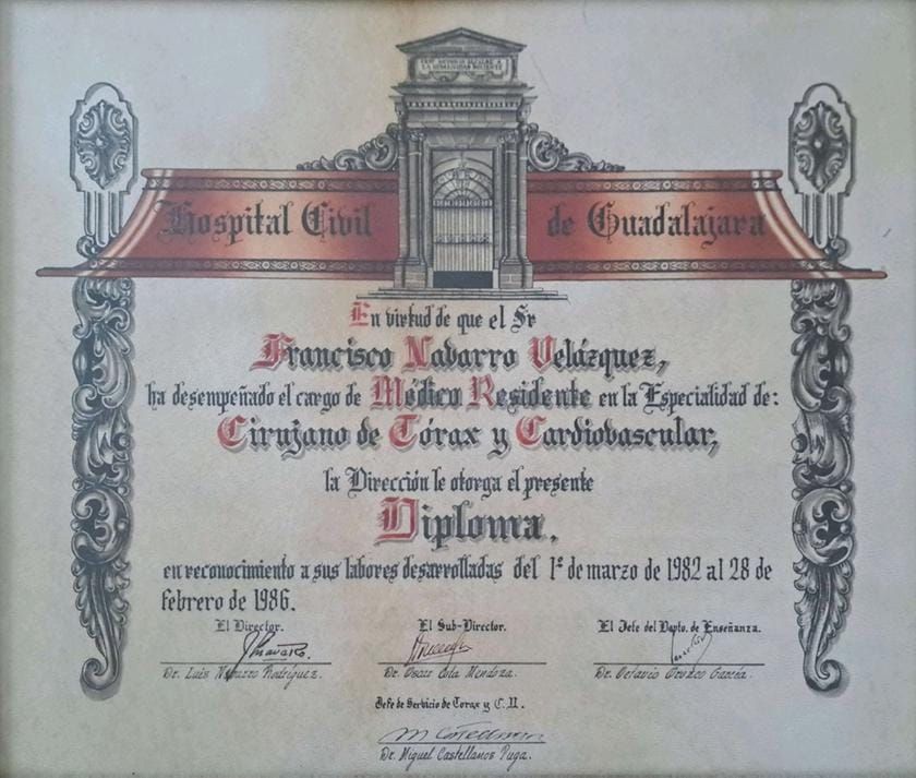 Cirujano Especialista con mas de 30 años en el ejercicio médico, docente de la Universidad de Guadalajara en el área médica, Angiología y Cirugía de Tórax y Cardiovascular, IMSS Guadalajara, Recertificado por el Consejo de Cirugía Torácica y Consejo de Cirugía Vascular y Endovascular