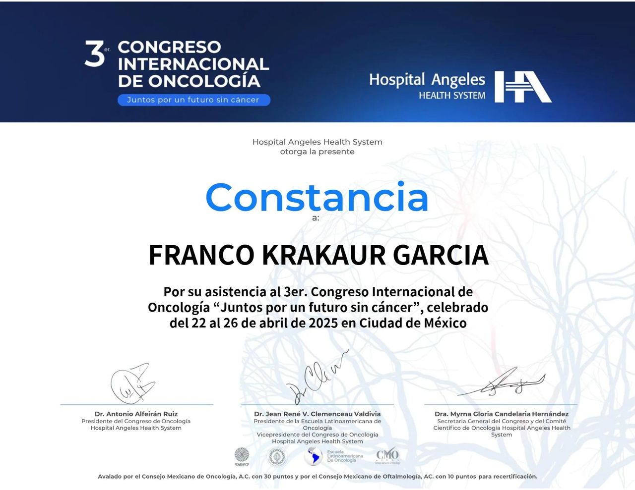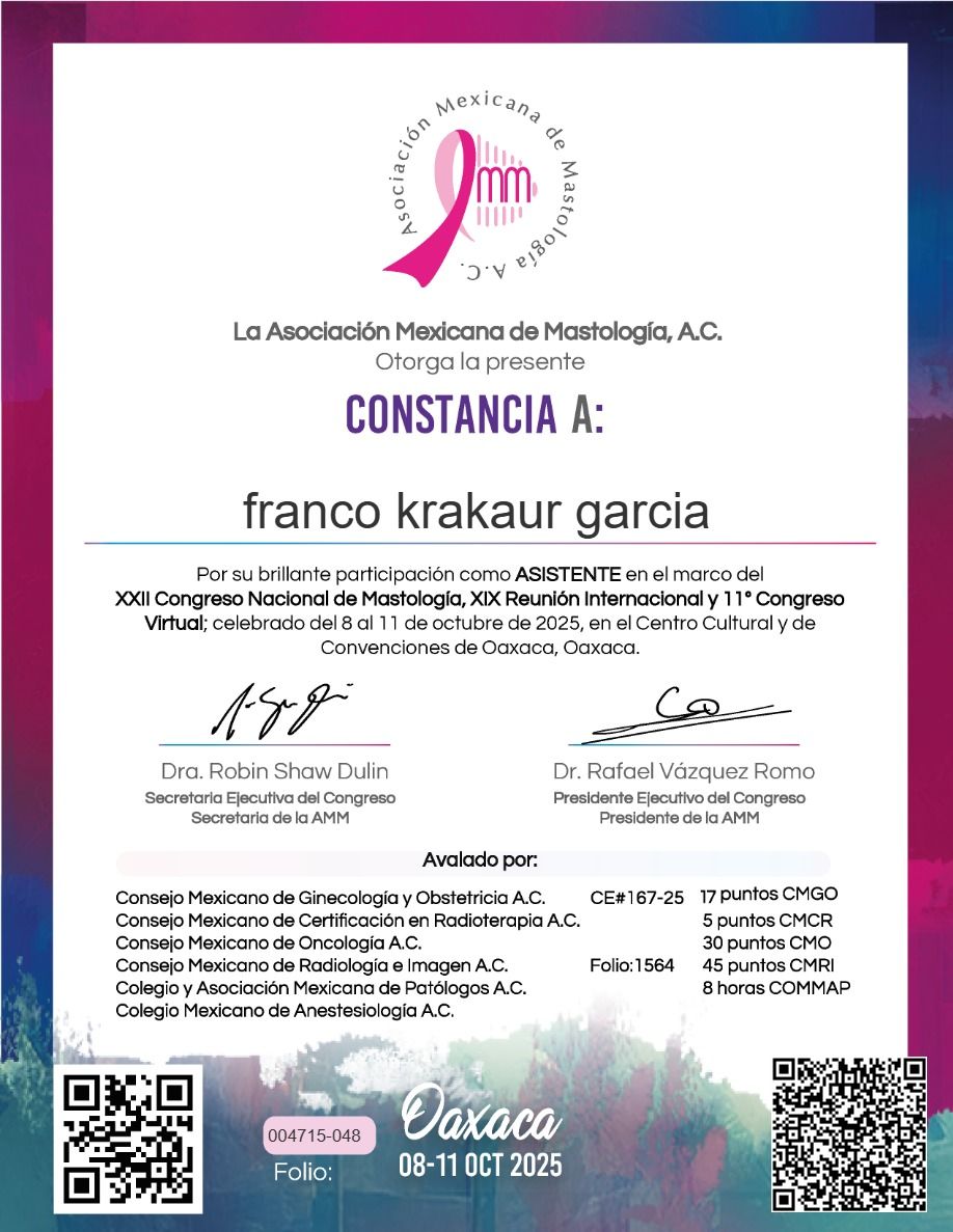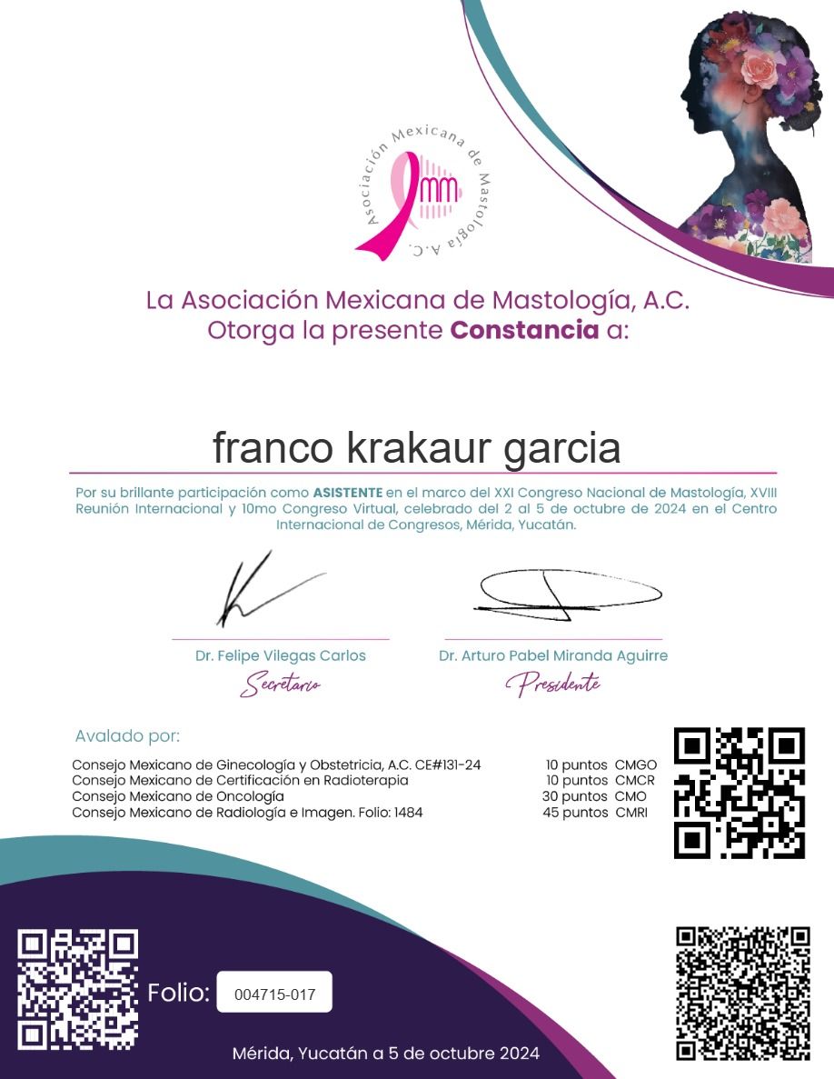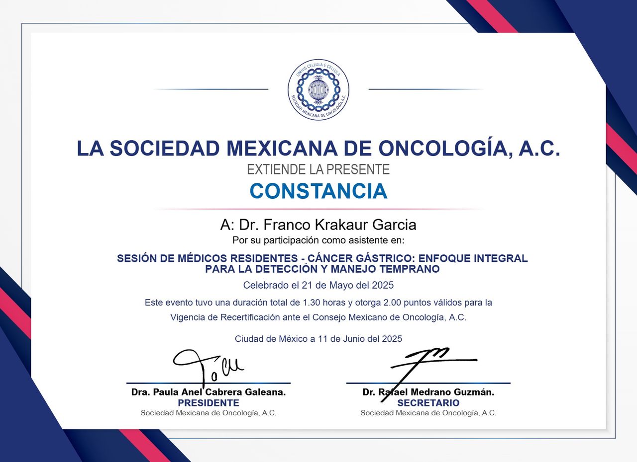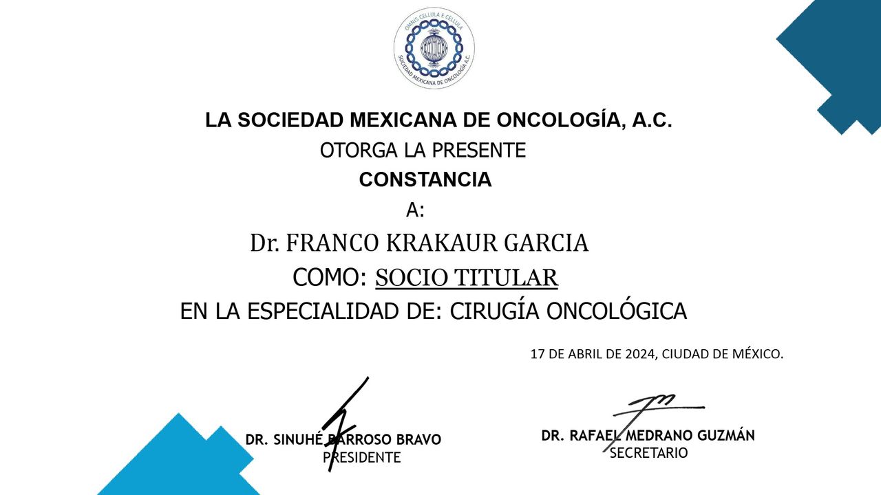 168 opinionesSoy el Dr. Franco Krakaur, oncólogo quirúrgico con formación en México e Italia. A lo largo de mi carrera he aprendido que el tratamiento del cáncer debe ir más allá de la enfermedad, por eso creé Holisticare, un enfoque integral que combina medicina oncológica, nutrición y terapias complementarias para mejorar la calidad de vida de cada paciente.