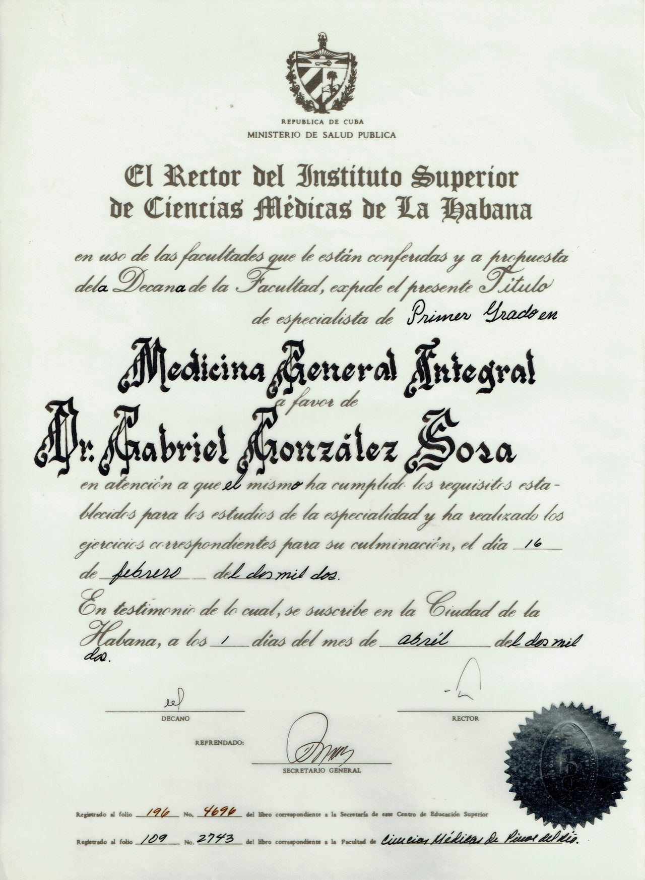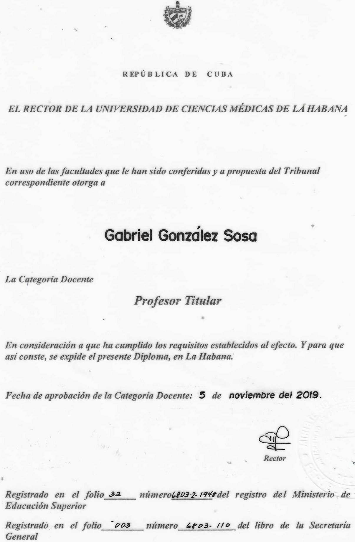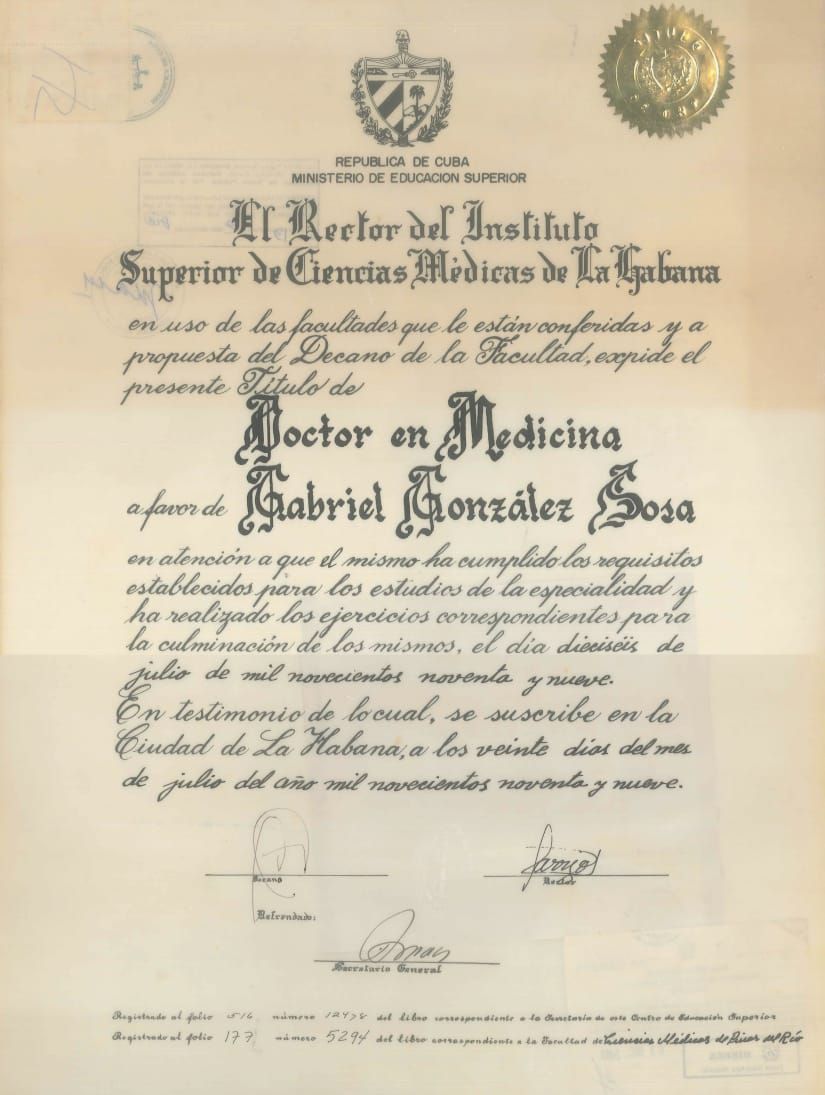 Graduado de Licenciatura en Medicina (1999), Especialista en Medicina General Integral (2001), Especialista en Cirugía General y Laparoscópica (2006) y Doctorado en Ciencias Médicas (2018). Todos mis estudios de pregrado y postgrado realizados en la Universidad de Ciencias Médicas de la Habana, Cuba. Experiencia como Licenciado en Medicina (26 años) y como Especialista en Cirugía General y Laparoscópica (19 años). Profesor Titular de Cirugía General del Departamento de Cirugía General de la Universidad de Ciencias Médicas de La Habana, Cuba e Investigador Titular de la Academia de Ciencias de Cuba. En mi aval como médico especialista cuento con 91 cursos de postgrado impartidos y/o recibidos (69 nacionales y 22 internacionales), participación en 105 eventos de carácter científico (74 nacionales y 31 internacionales) con 70 trabajos presentados en los mismos y un total de 19 publicaciones científicas en revista de alto impacto. Tutor de formación de varios médicos residentes de Cirugía General de distintas nacionalidades y de sus tesis de terminación de la especialidad, así como he sido tutor y oponente de tesis de Maestría y Doctorado. Miembro de la Sección de Cirugía Torácica de la Sociedad Cubana de Cirugía (2003), de la Sociedad Cubana de Cirugía General (2007) y de la Sociedad Ibero-Latinoamericana de Cirugía General (2012).