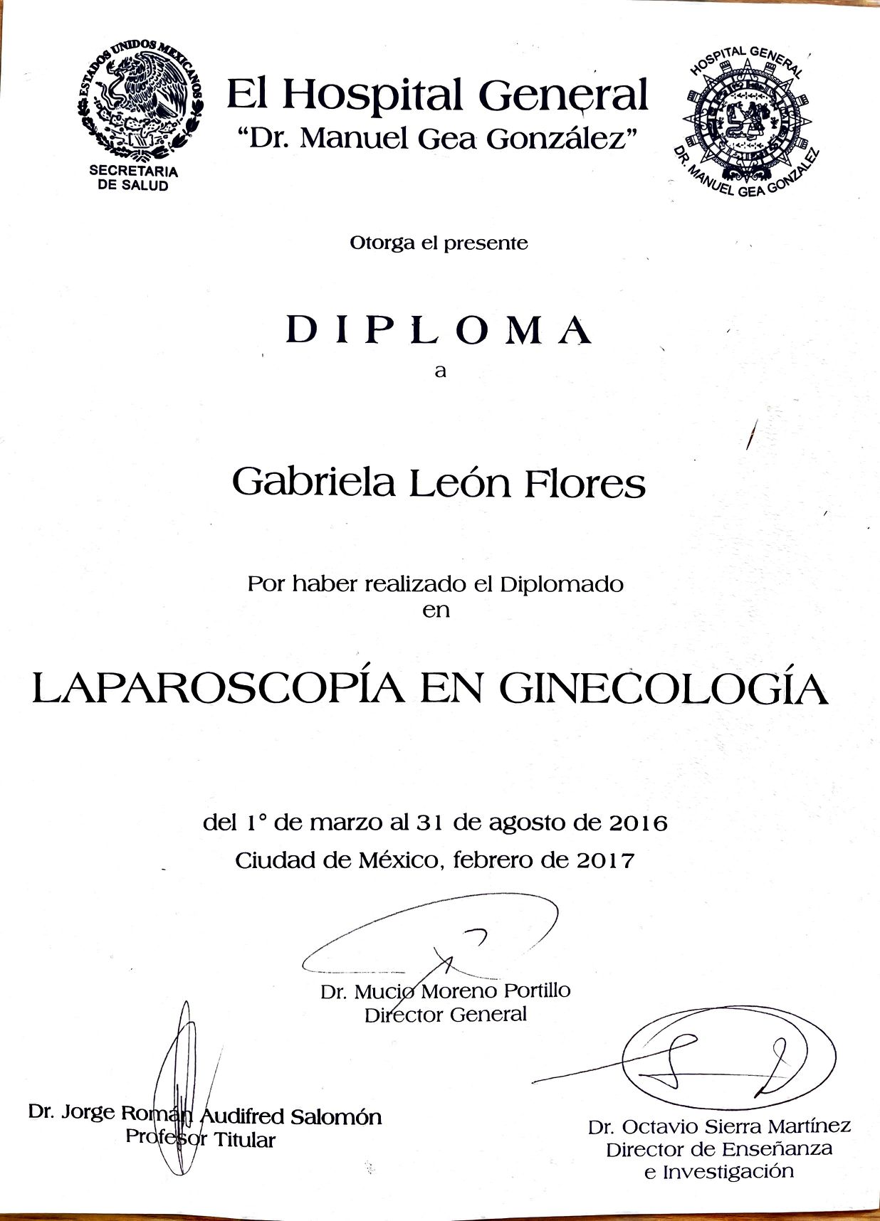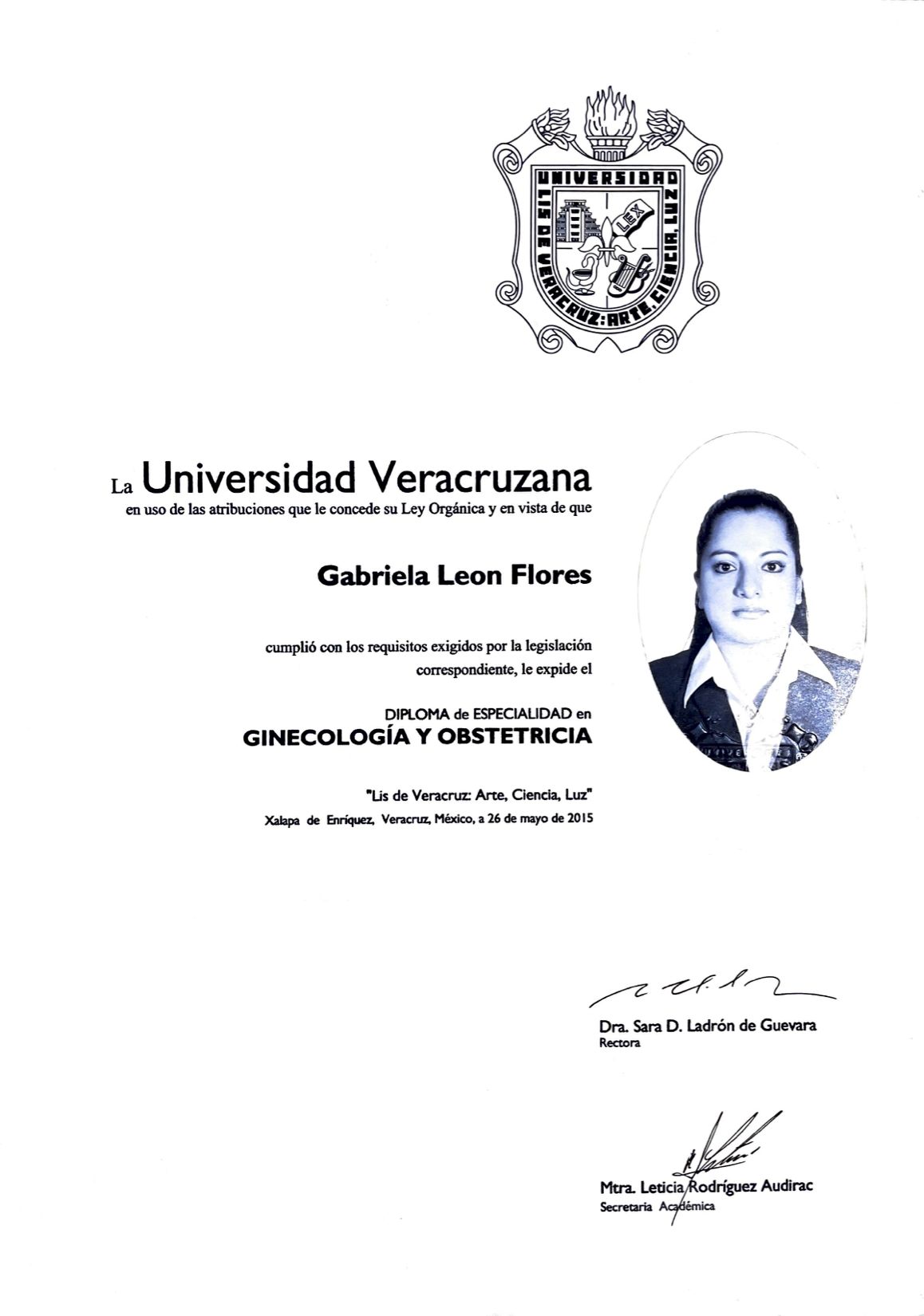 Soy la Dra. Gabriela Leon Flores Médico Ginecóloga especialista en enfermedades del útero y ovarios, embarazo, Certificada ante COMEGO que es el Consejo Mexicano de Ginecología y obstetricia vigente. Experiencia en el manejo de enfermedades de Útero como Miomas, Adenomiosis, Endometriosis, Sangrados anormales, Quistes en los ovarios, Adherenias, Embarazo, Parto y Puerperio, Tumores de Mama, Cirugía Laparoscopica Y Estetica y Rejuvenecimiento Vaginal. Actualmente parte del equipo del departamento de cirugía laparoscopica de ginecología en el Hospital “José María Morelos y Pavón” del ISSSTE, en el grupo San Ángel inn y Ángeles. Soy un médico en constante preparación, honesta, responsable y empática con los pacientes, a sus ordenes para valoración de la función de útero, ovarios y embarazo en la Torre A, piso 6 consultorio 608, Hospital Ángeles México, Angeles Universidad, San Angel inn Patriotismo.