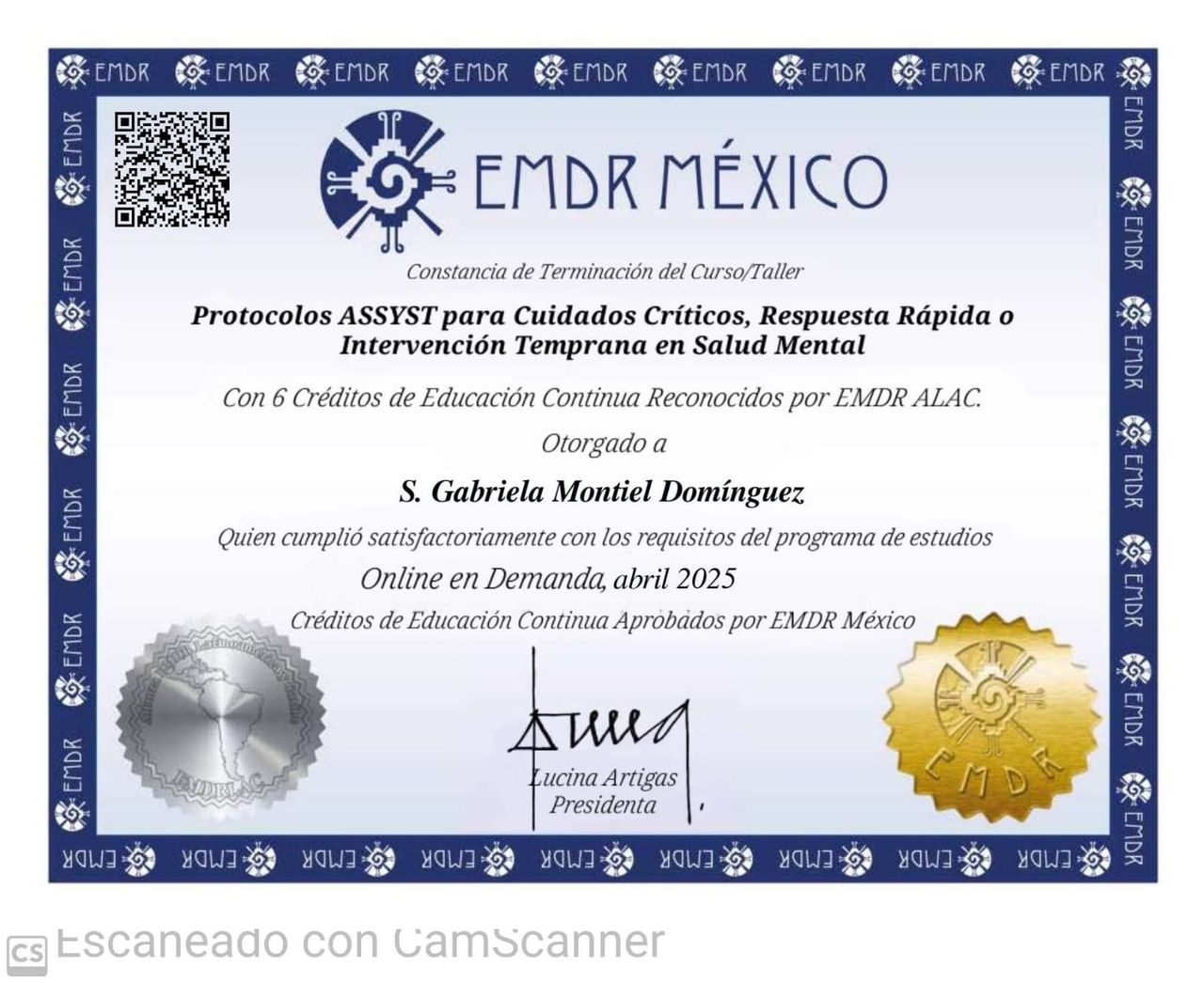 Especialista en intervención en crisis.