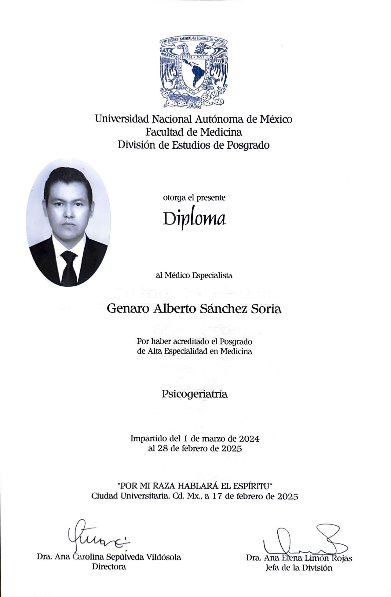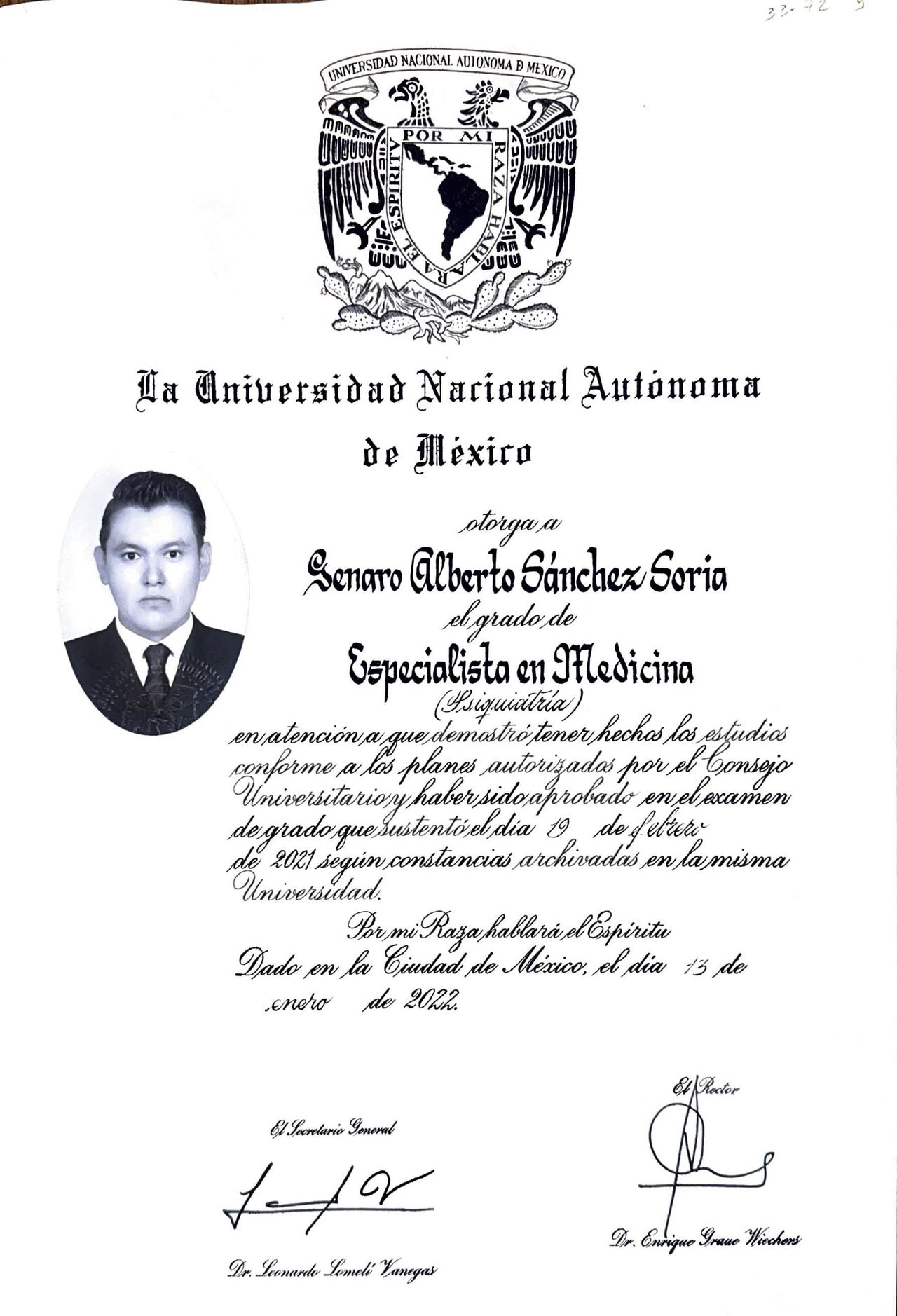 Hola! Soy el Dr. Genaro, médico especialista en Psiquiatria y cuento con una Alta Especialidad en Psicogeriatría avaladas por la UNAM.